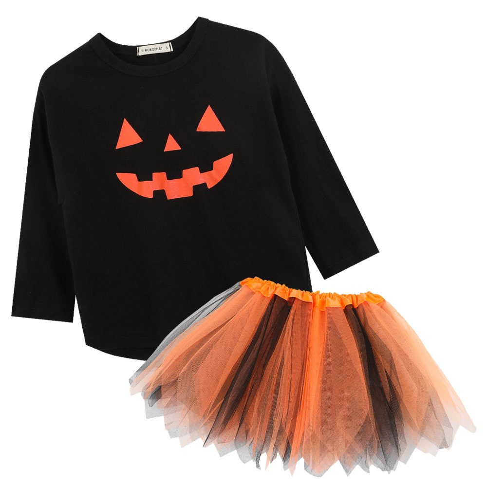 ROROCHAT Traje Infantil Conjunto De Abóbora De Halloween Vestido Saia Superior