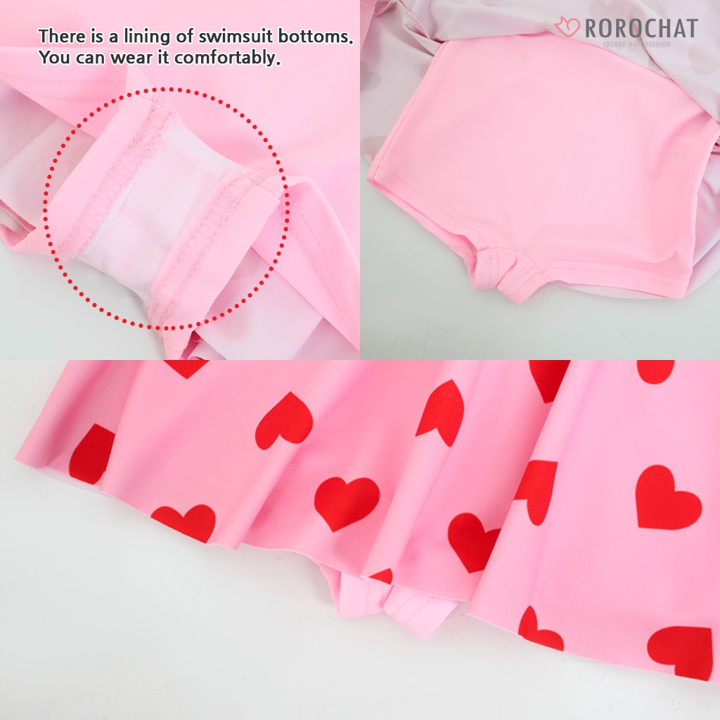 K-FASHION ROROCHAT Maiô Feminino Com Padrão De Coração Vestido Rosa 3-9 Anos Rashguard De Piscina Menina Estilo Princesa Material Protetor Solar UPF50 +