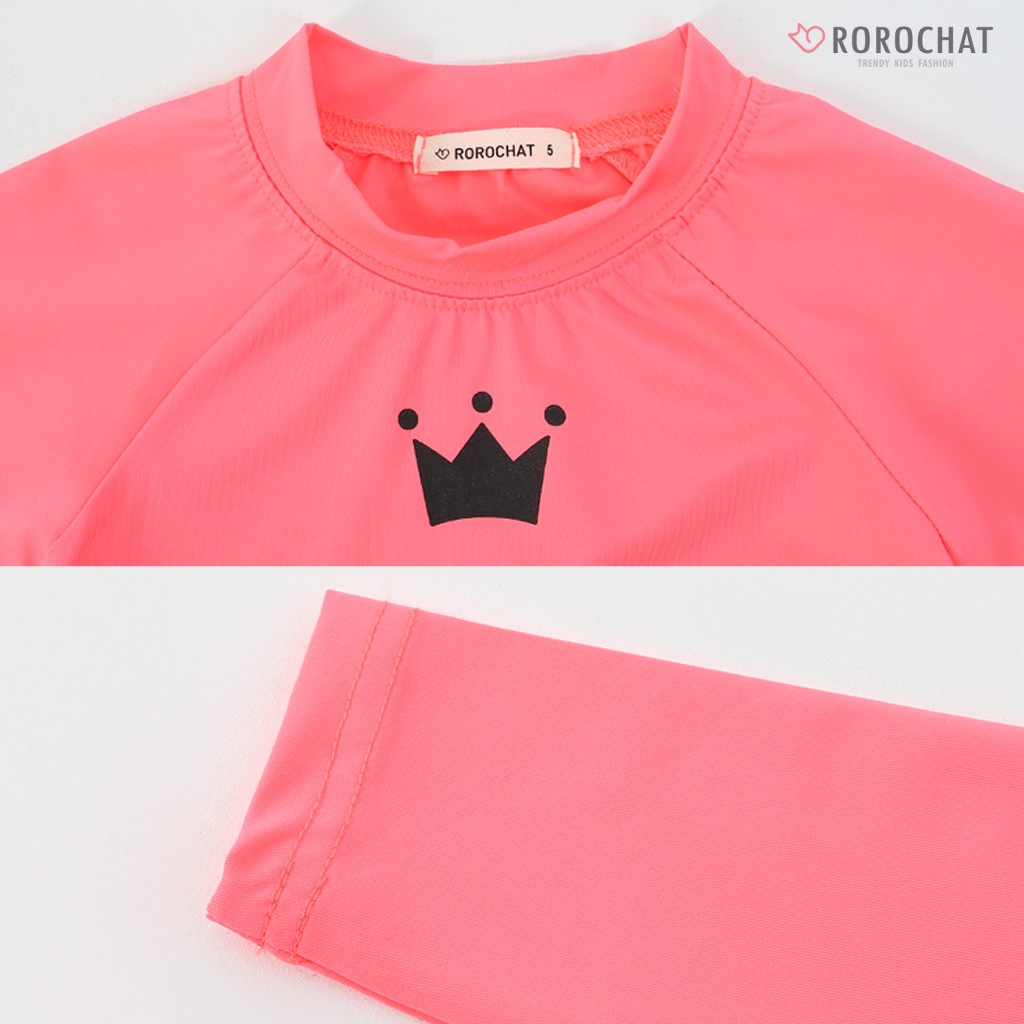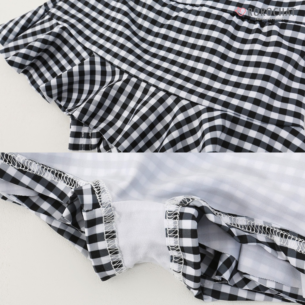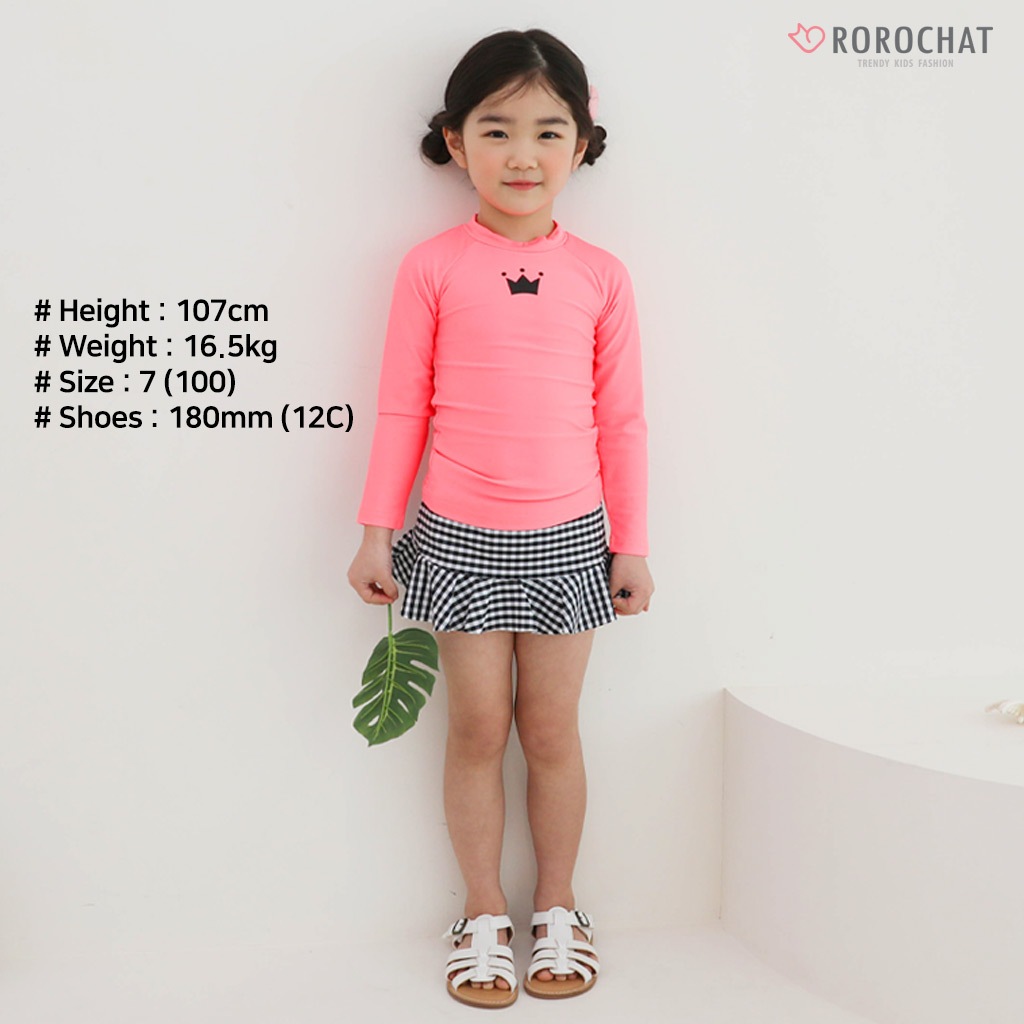 ROROCHAT Maiô Feminino Rosa De Manga Comprida , Duas Peças , Vestido De 3 A 9 Anos , Traje De Banho Com Padrão Xadrez , Tecido Bloqueador UV UPF50 +