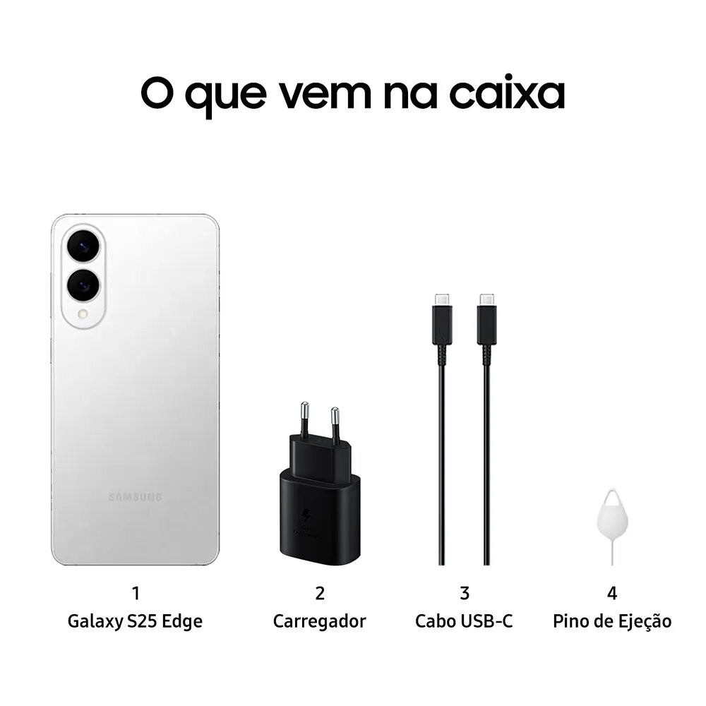 Smartphone Samsung Galaxy S25 Edge 512GB 5G - Titânio Prata, Galaxy AI, Câmera Dupla 200MP, RAM 12GB, Tela 6.7"