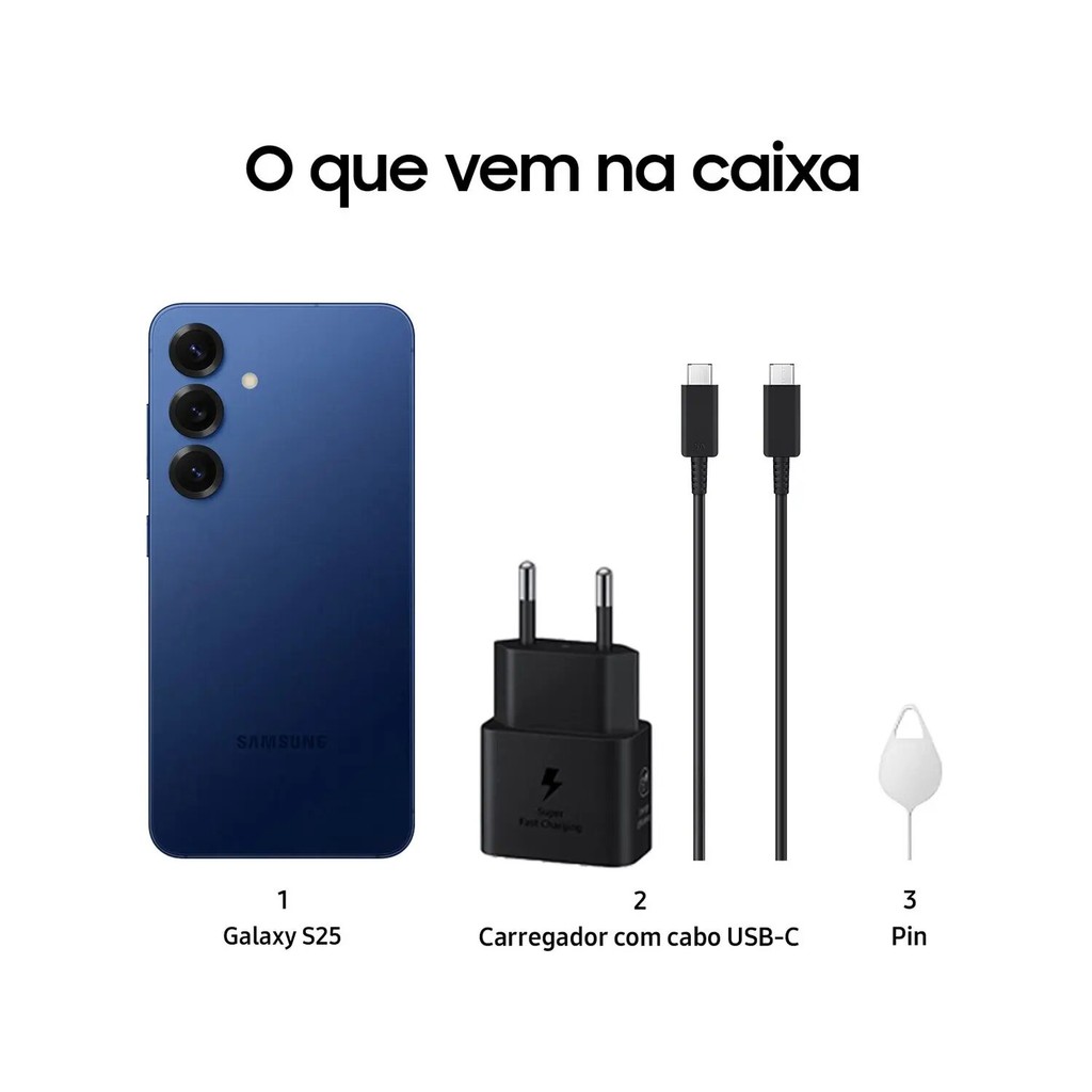 Smartphone Samsung Galaxy S25 256GB 5G - Azul Marinho, Galaxy AI, Câmera Tripla 50MP + Selfie 12MP, RAM 12GB, Tela 6.2"