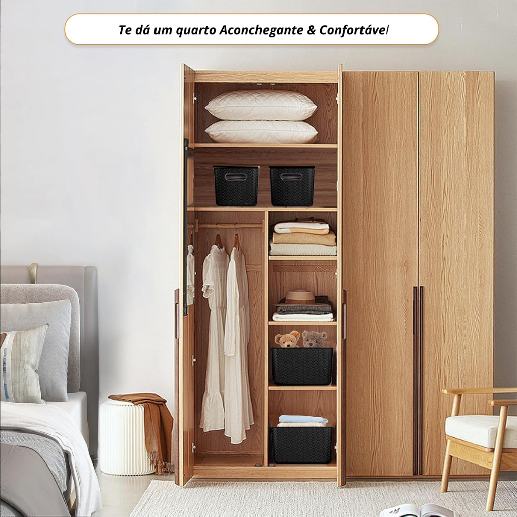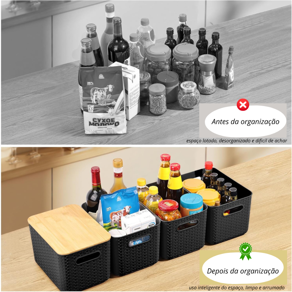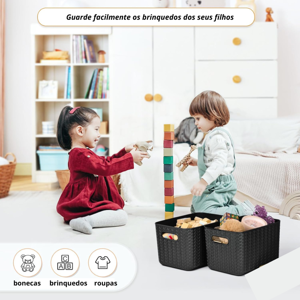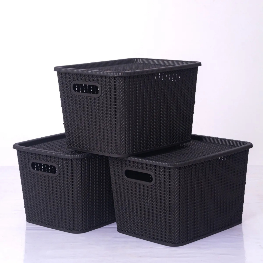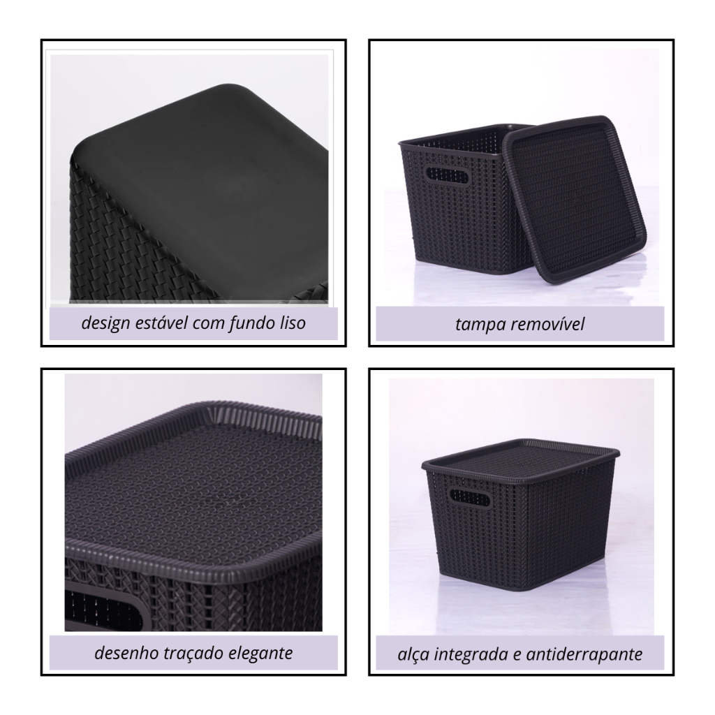 Kit 3 Caixa Organizadora Brinquedo Cesto Tampa Alça Empilhável Grande 20 L Rattan