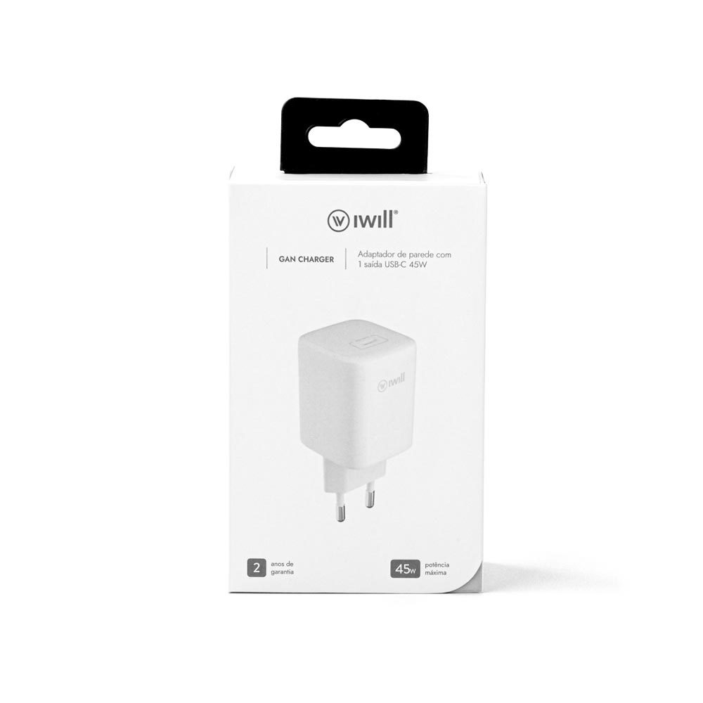 Carregador de parede Turbo GaN 45W USB-C Branco | GaN Charger iWill