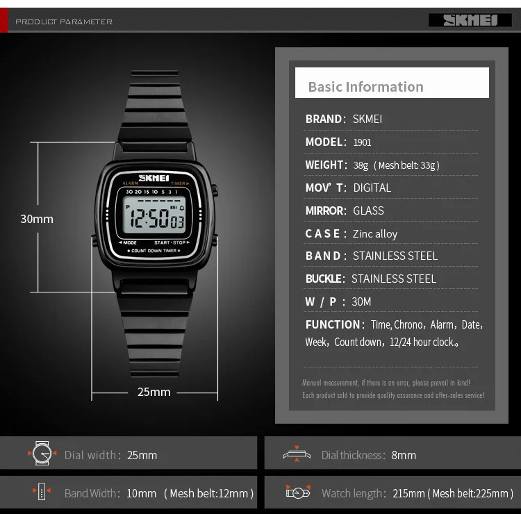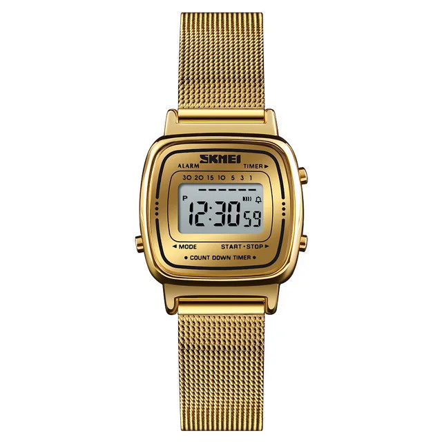 SKMEI 1901 Relógio Digital Feminino de Luxo Dial Pequeno Aço Inoxidável Impermeável