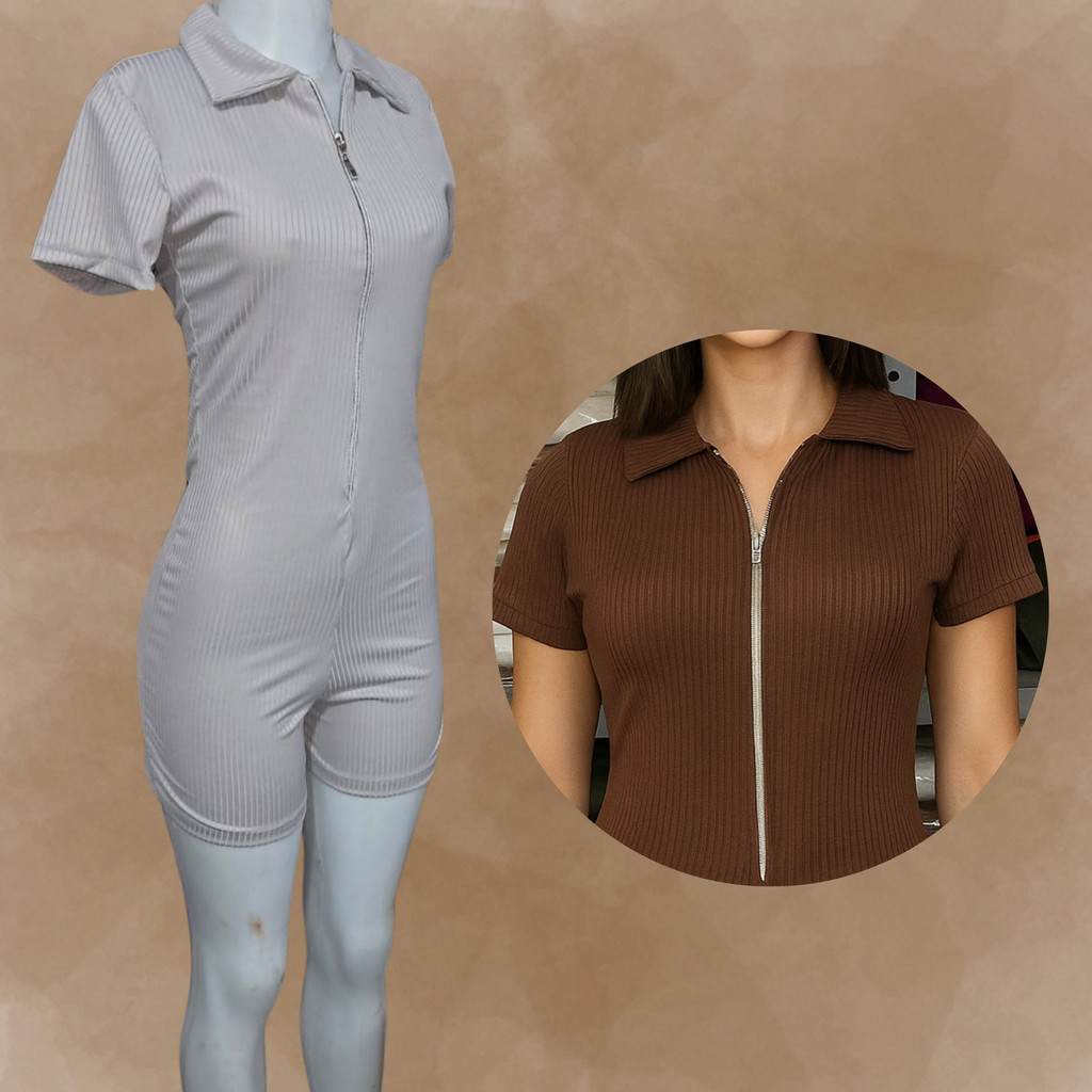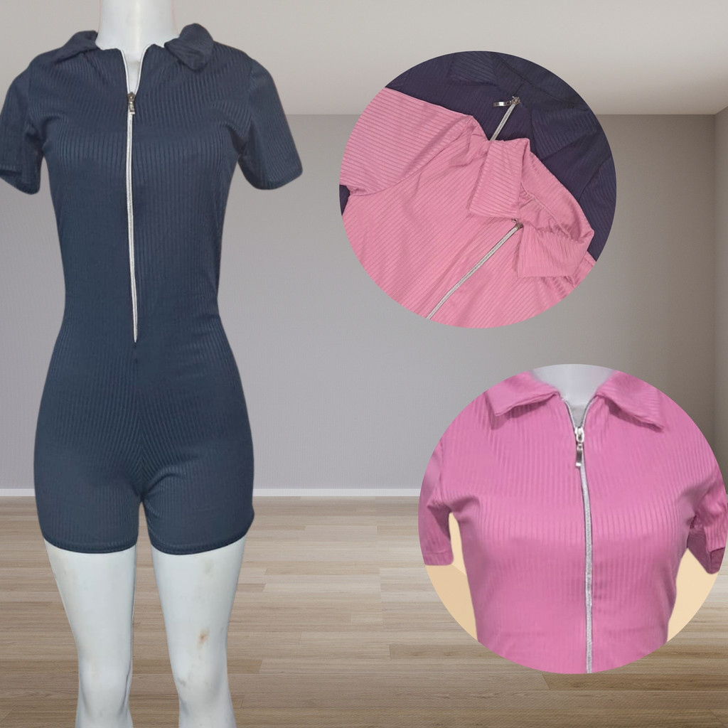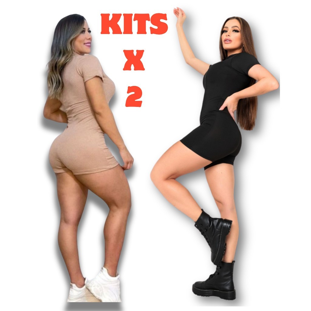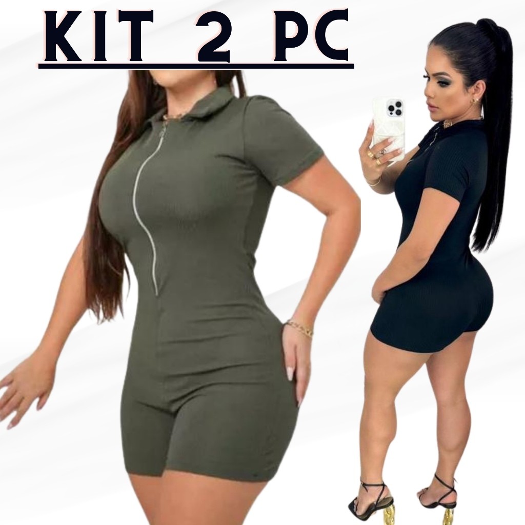 KITS 2 PECAS "Macaquinho Diva: Moda Verão Primavera, Manga Curto Canelado, Zíper Gringo Premium"