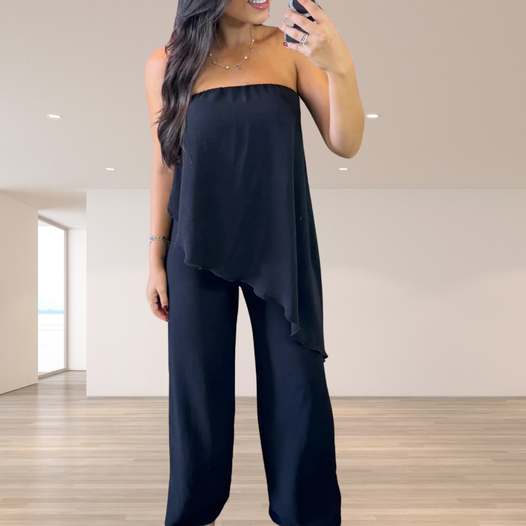 Conjunto Duna Preto Feminina Calça Pantalona E Blusa Tomara Que Caía - ser você mesma