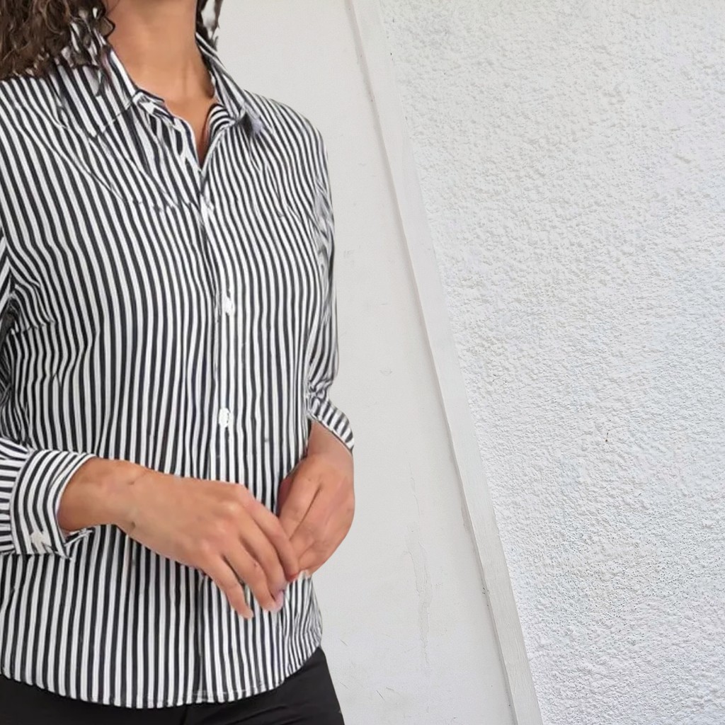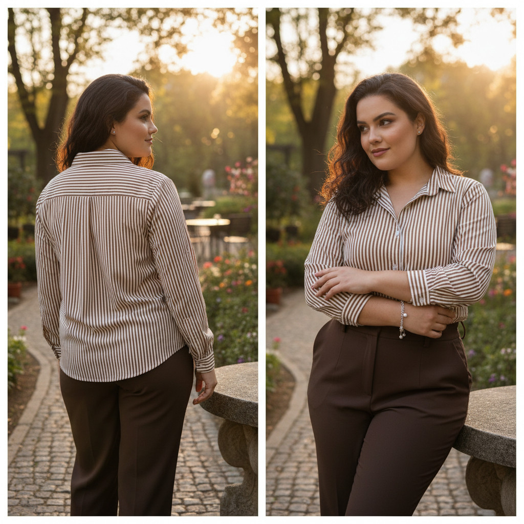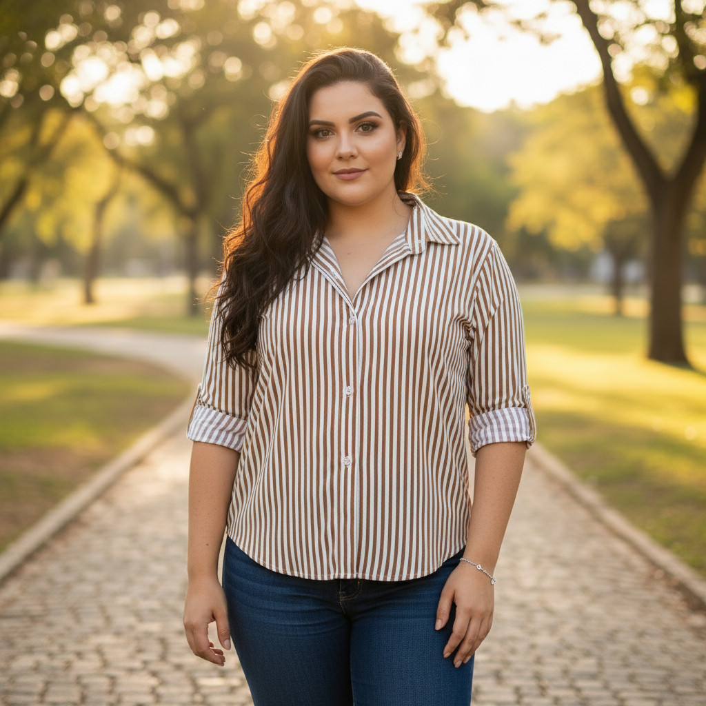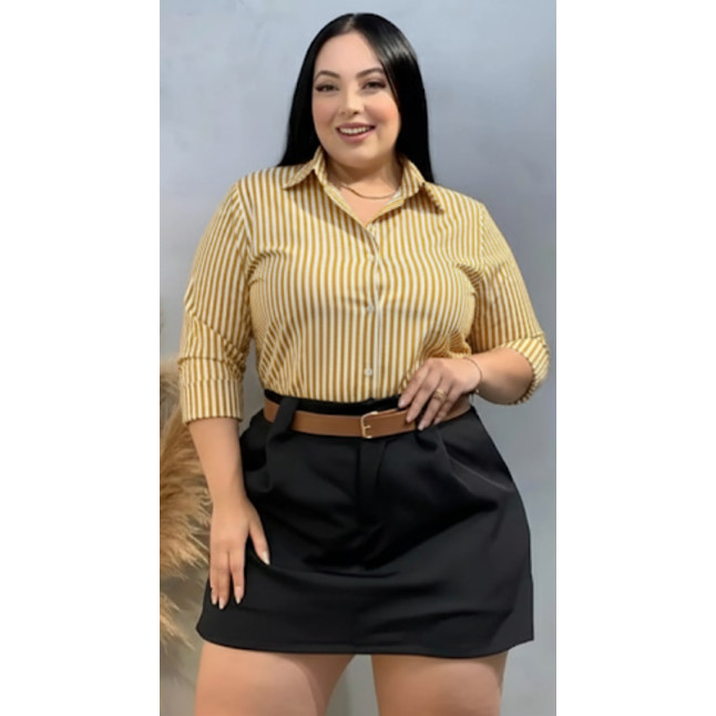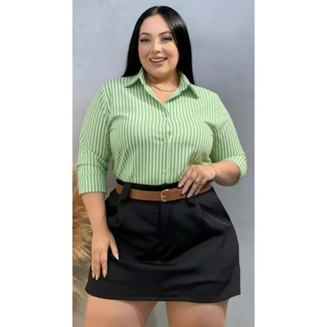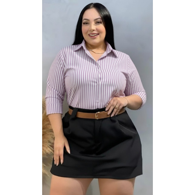 Camisa Social Listrada Feminina Crepinho Plus Size Do PP ao G3 Moda Feminina Envio Rápido