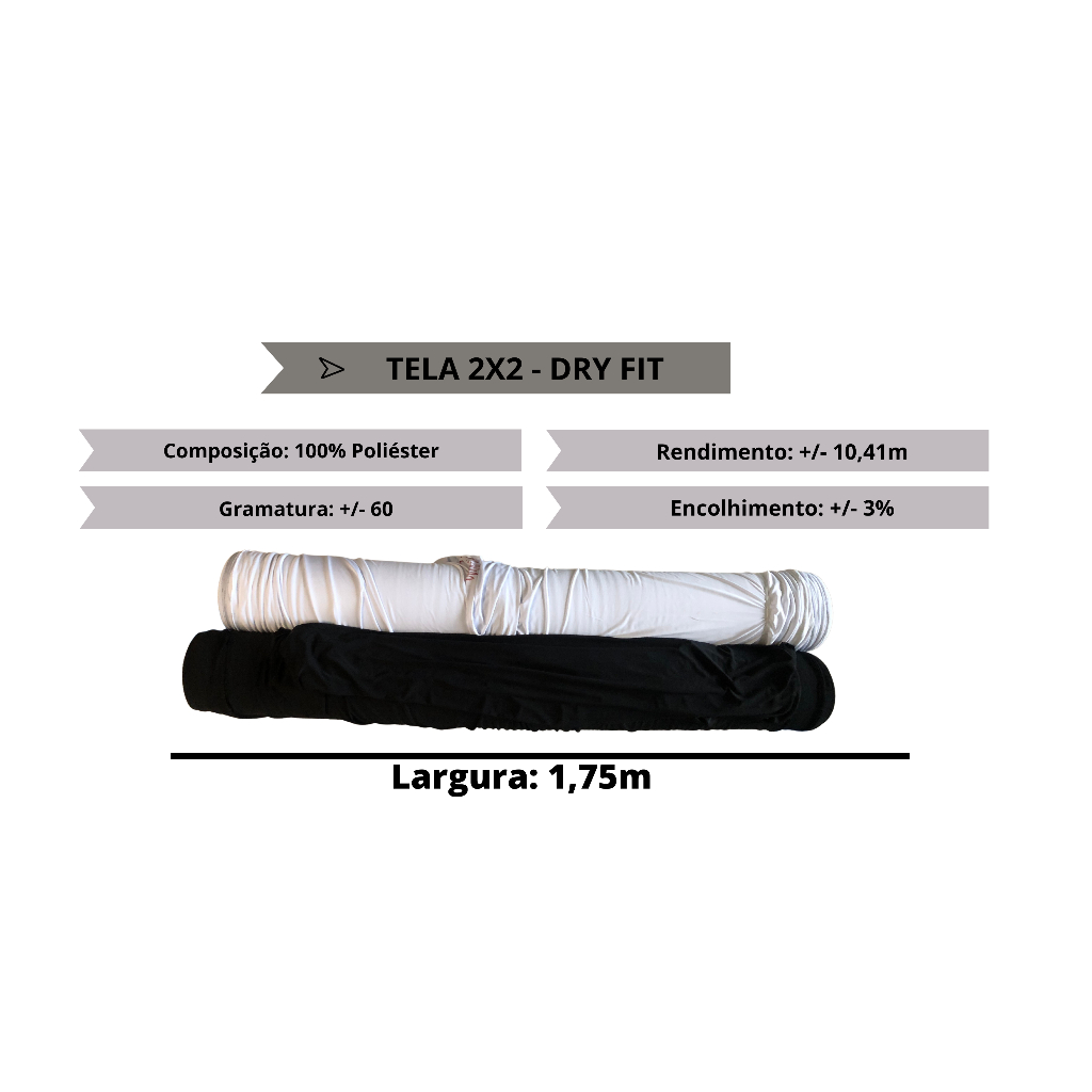 Tecido Malha Furadinho Dry Fit Tela 2x2 - 100% Poliéster - Branco e Preto