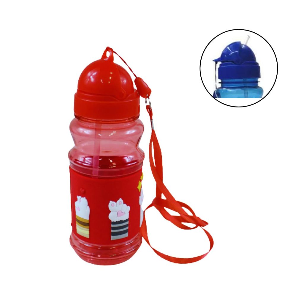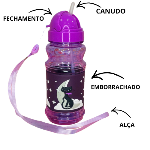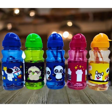 Garrafa Infantil de Plástico 430 ml com Canudo e Desenho Emborrachado Amigold