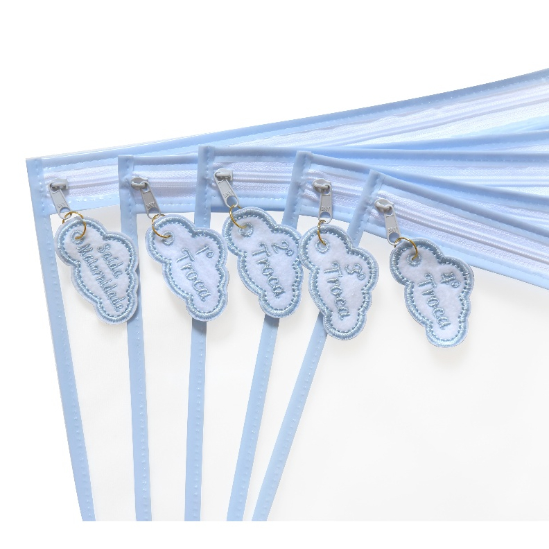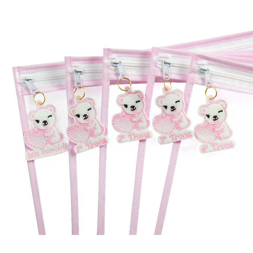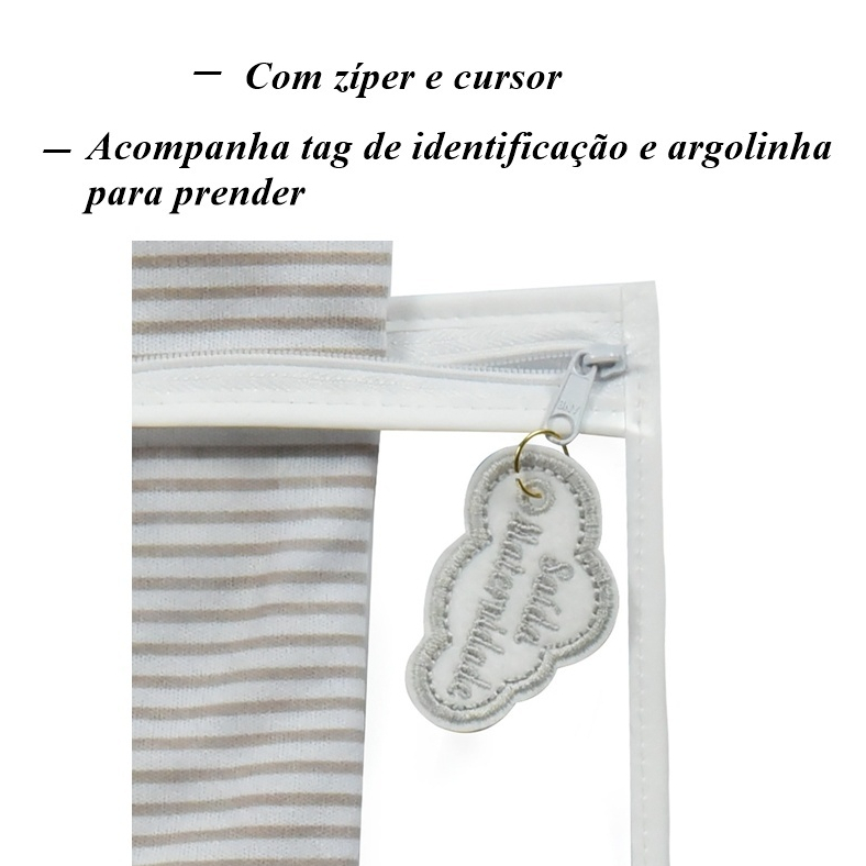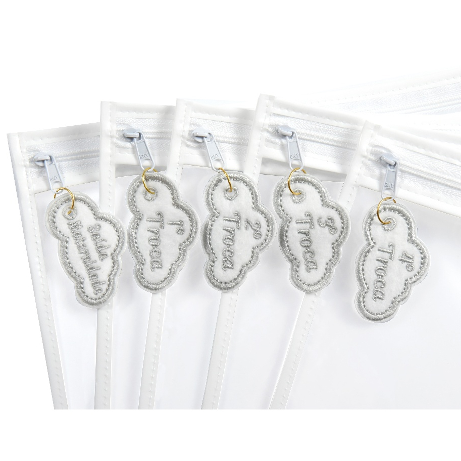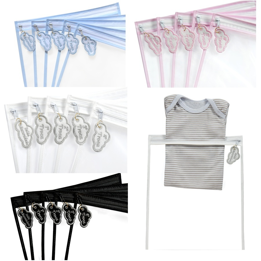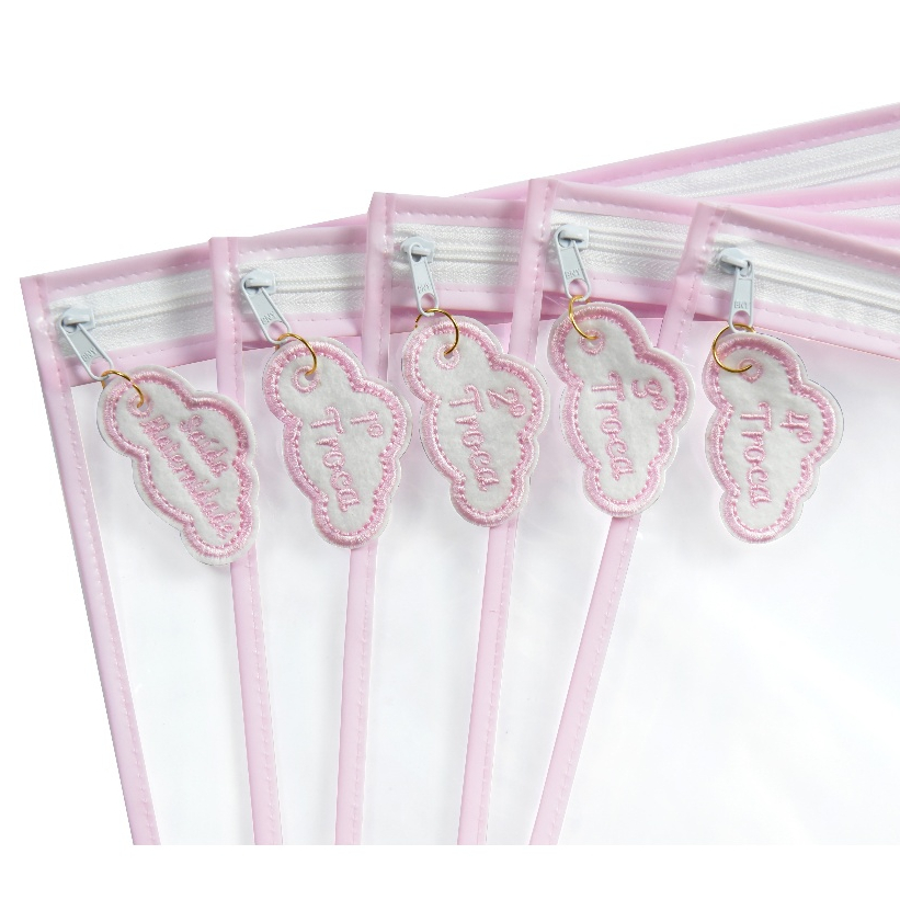 Kit 5 Saquinhos Maternidade Com Tag Bordada De Identificação Com Zíper