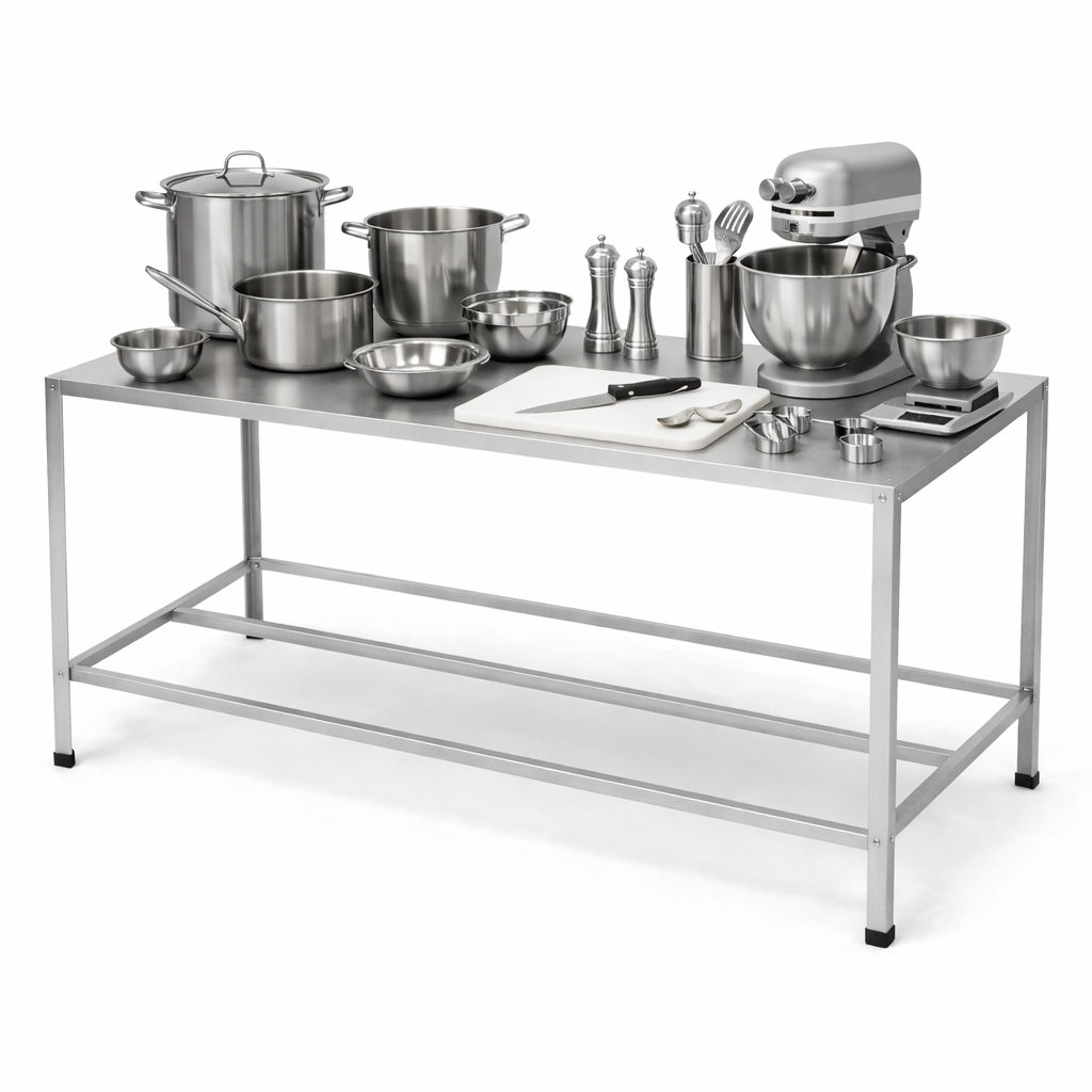 Mesa Profissional Aço Galvanizado G4 90x50x85 Reforçada - Cozinha Industrial Prateleiras Robusta