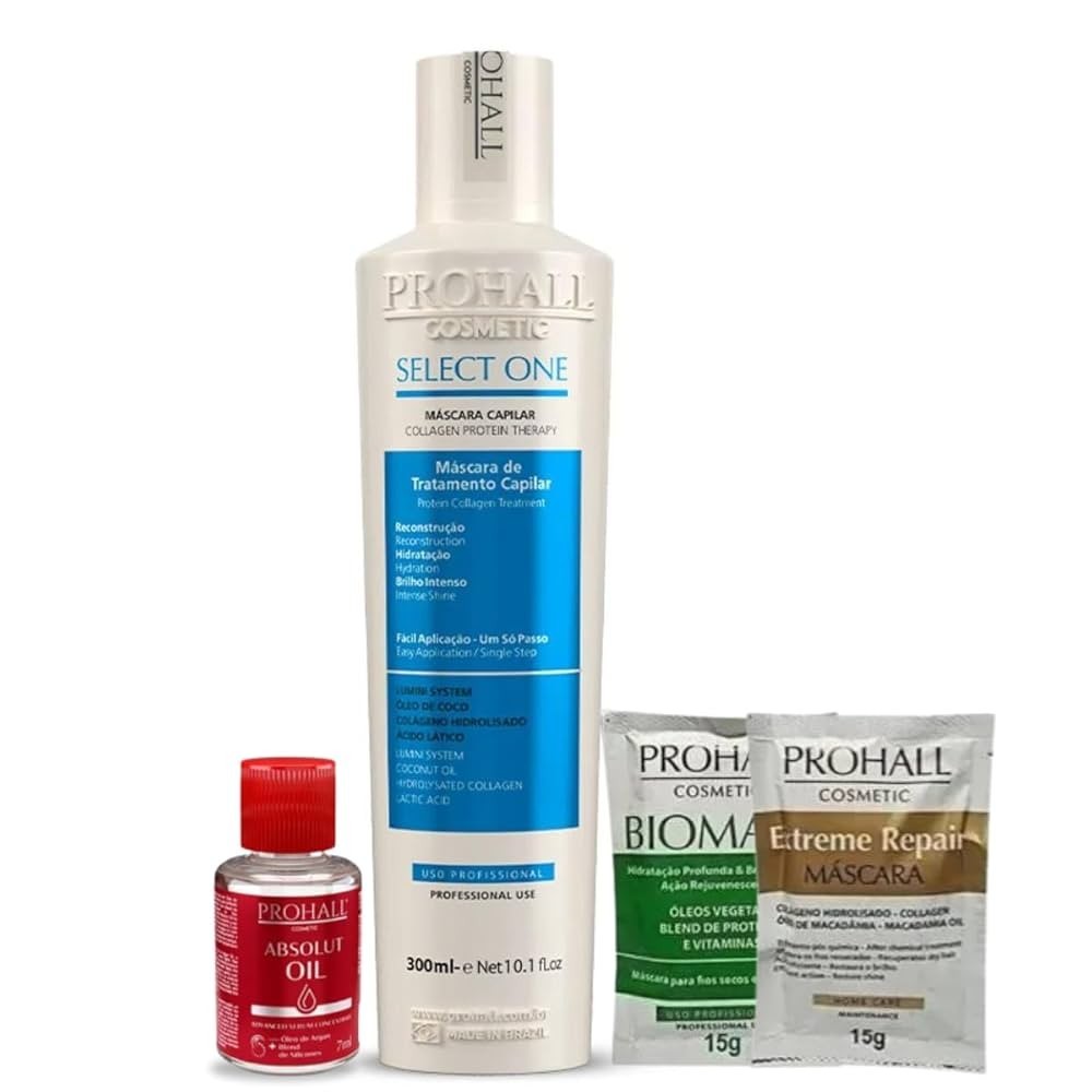 Prohall Select One Único Passo 300ml + Óleo 7ml + Escova Magica + 2 Saches Diversicados