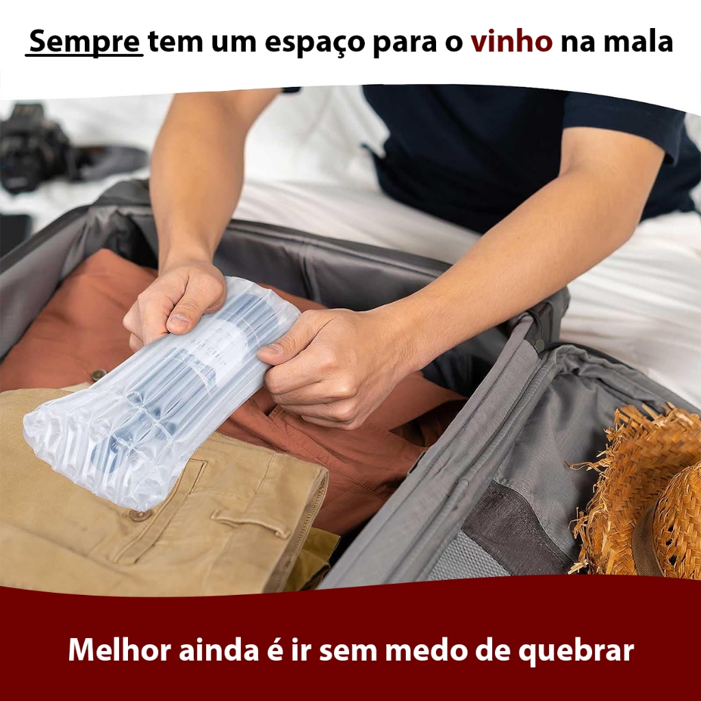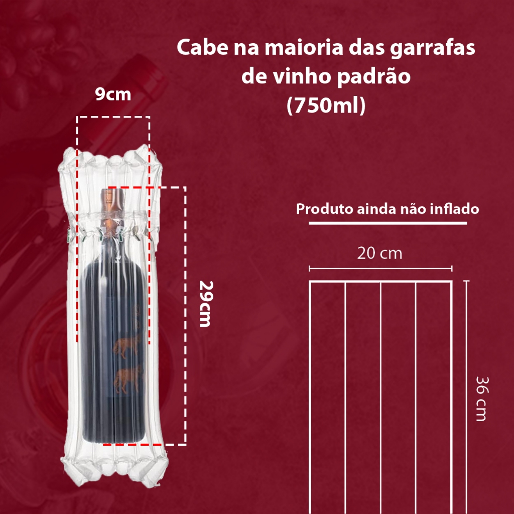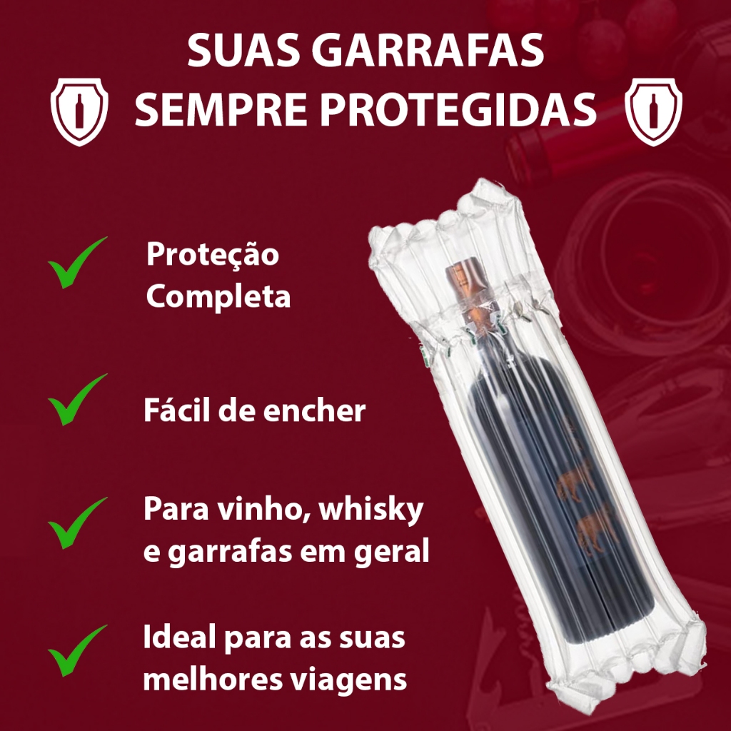 kit 20 Embalagem Inflável para Transporte e proteção Garrafa de Vinho e Bebidas + Bomba