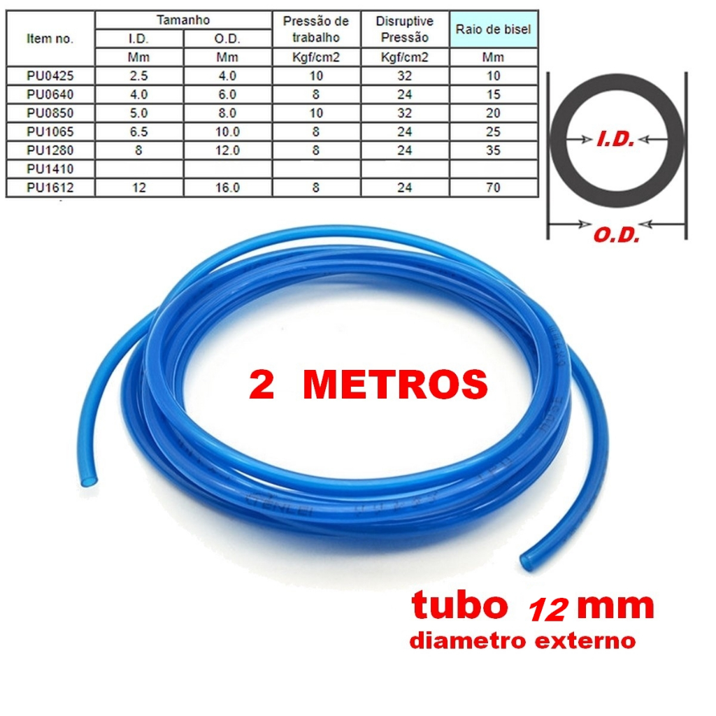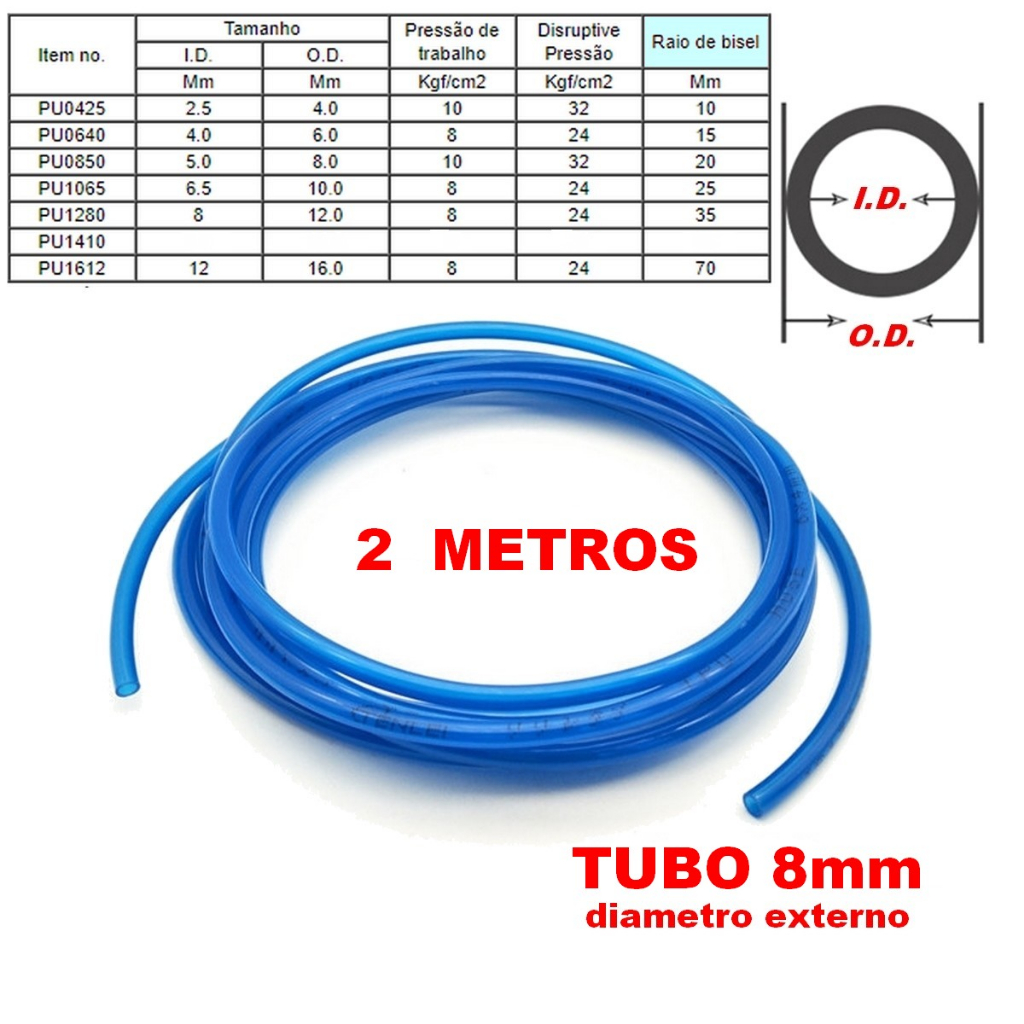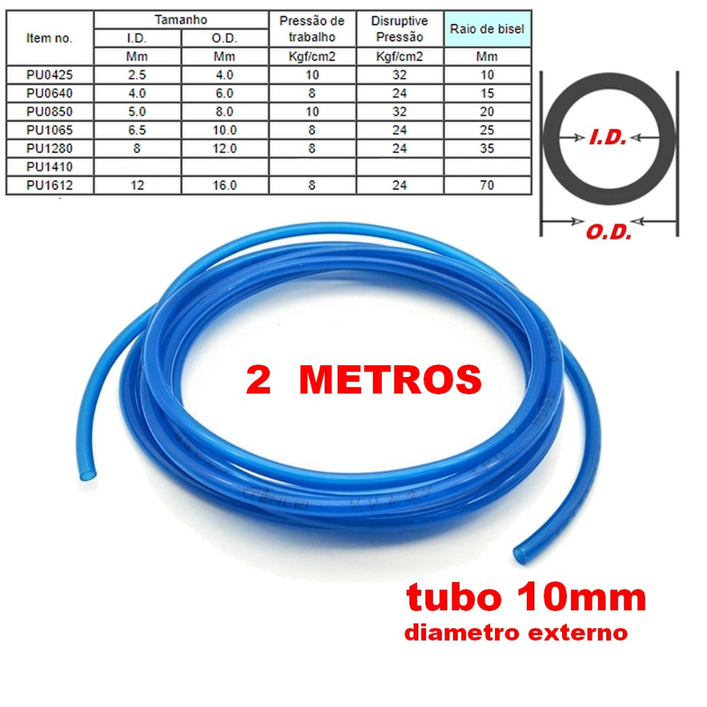 2 metros - Mangueira Tubo De Poliuretano Azul Pneumática, linha de ar - COMPRESSOR