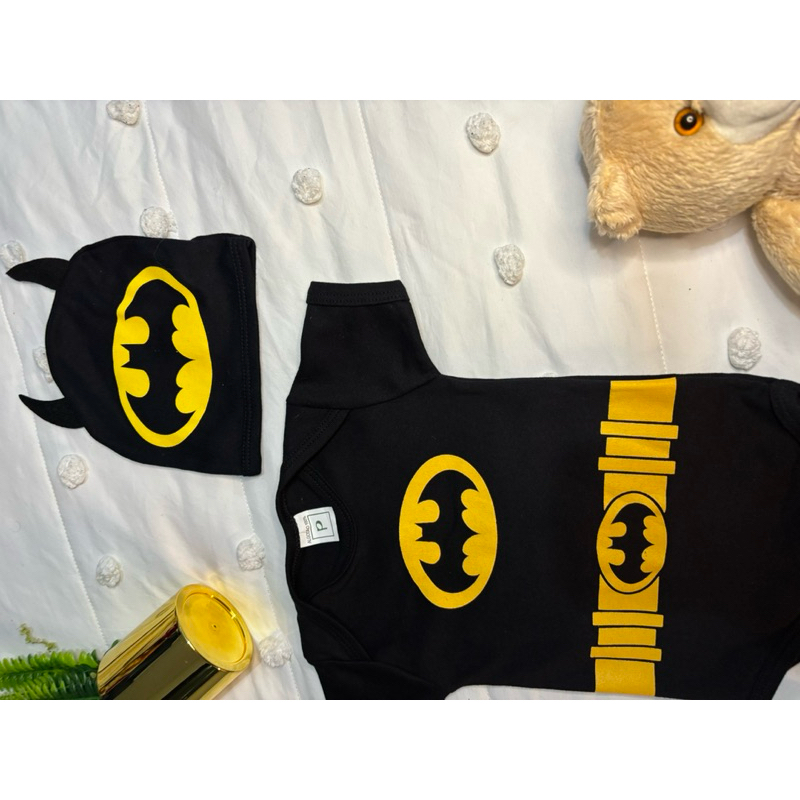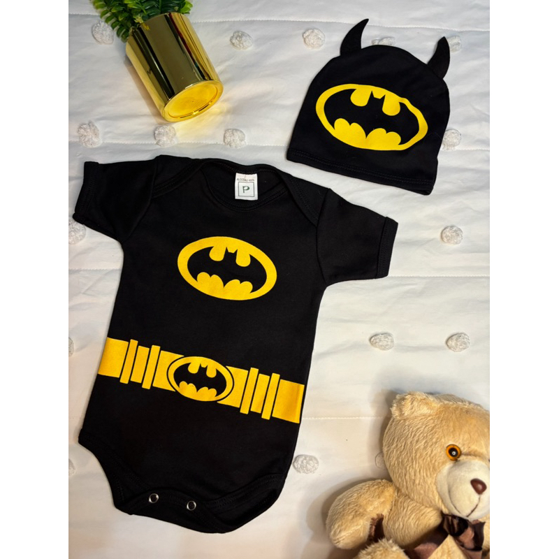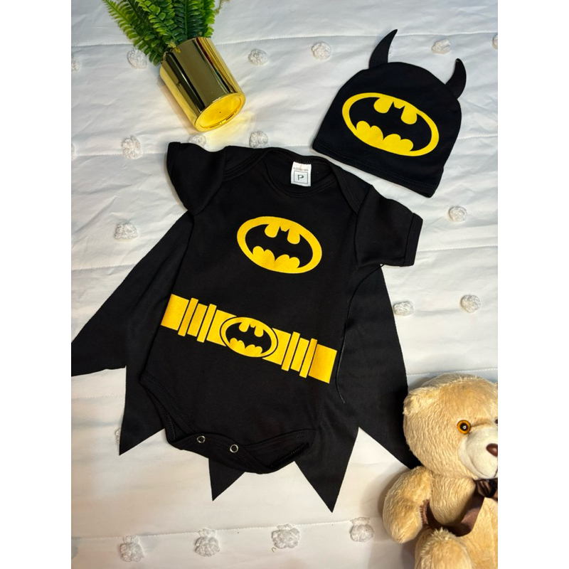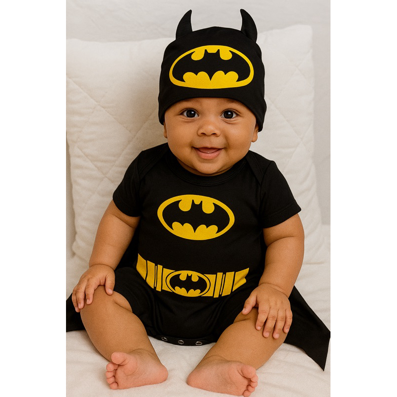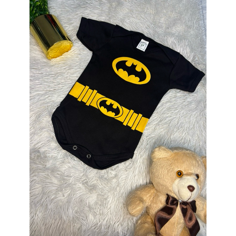 Body Bebê Infantil Mêsversário Temático Batman Preto Macacão Personagens Fantasia