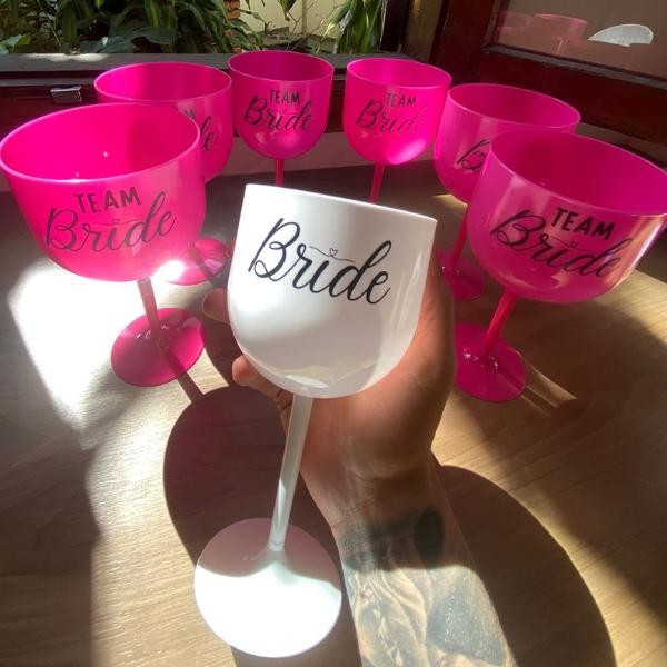 Kit 14 Taças De Gin 550ml Despedida De Solteira 1 Noiva + 13 Time da Noiva Bride Team Chá Lingerie