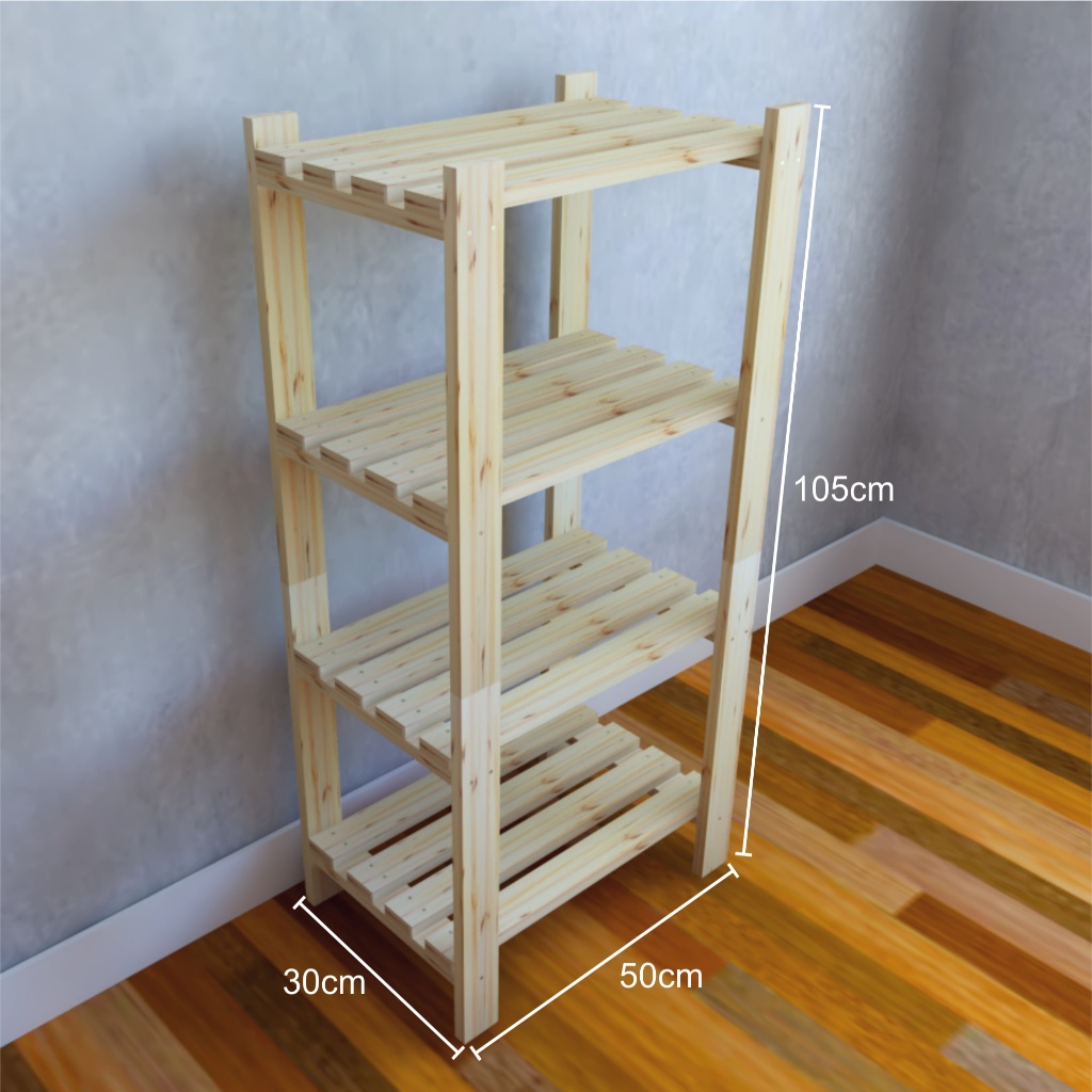 Estante com 4 Prateleiras de Madeira Maciça Pinus, Estante Multiuso 4 prateleiras Organizadora Along