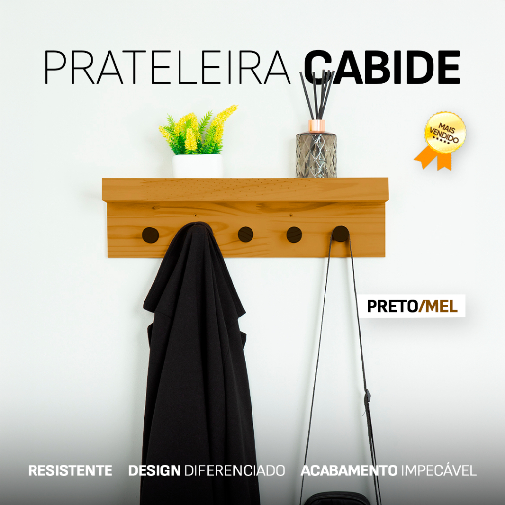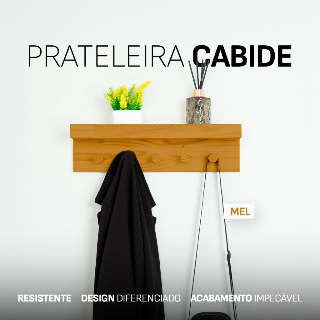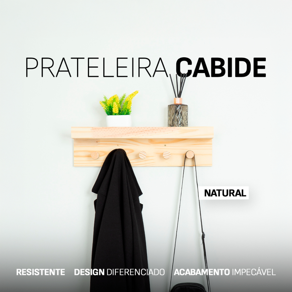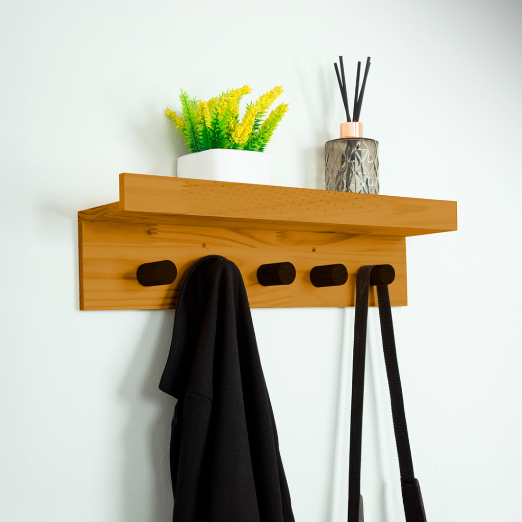 Prateleira Cabideiro 5 Pinos em Madeira Maciça – Funcionalidade, Organização e Estilo para Seu Lar