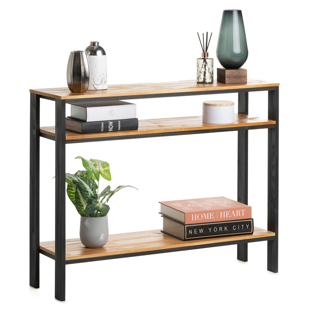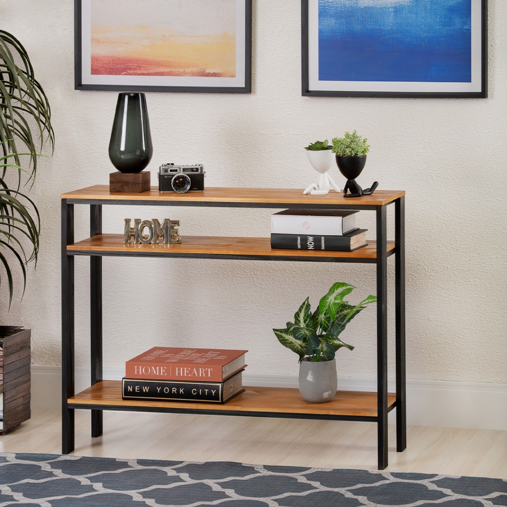 Aparador Buffet Multiuso Estilo Industrial Madeira Maciça Rack 3 prateleiras Estante Organizador