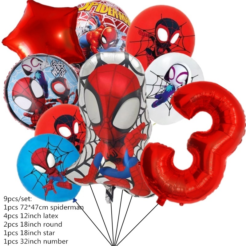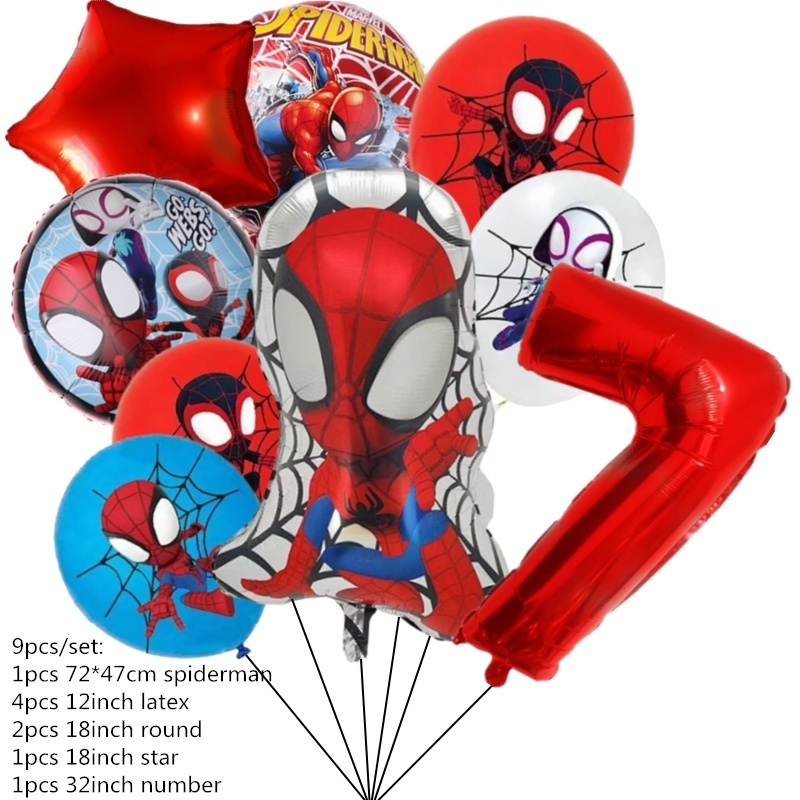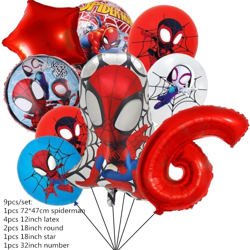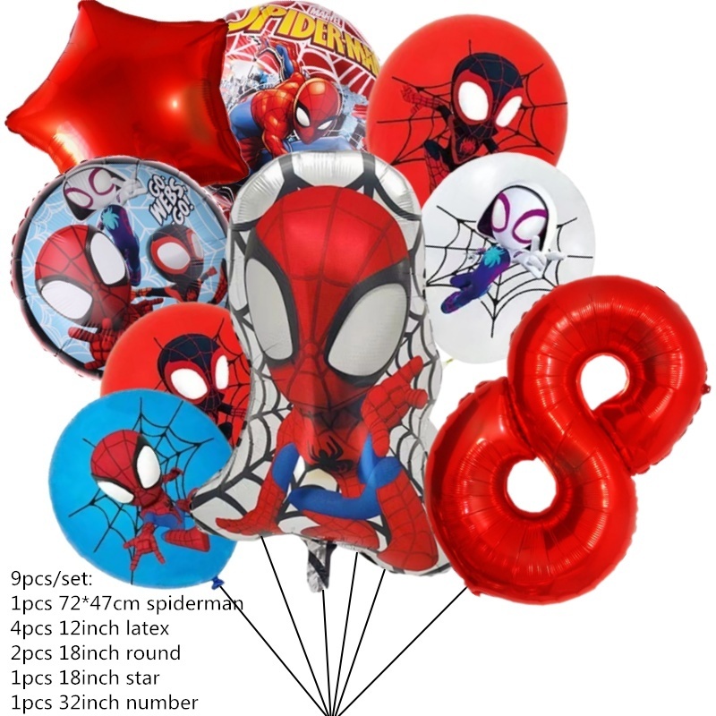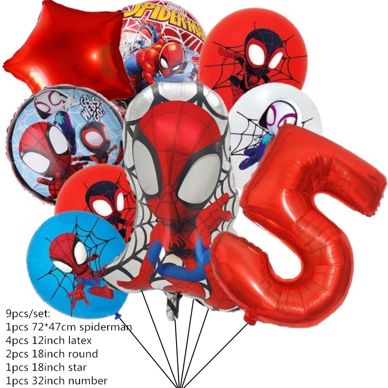 9pcs Spidey E Seu Incrível Amigo Balões De Festa Látex Número Ballon Crianças Menino Super Herói Tema Decorações De Aniv
