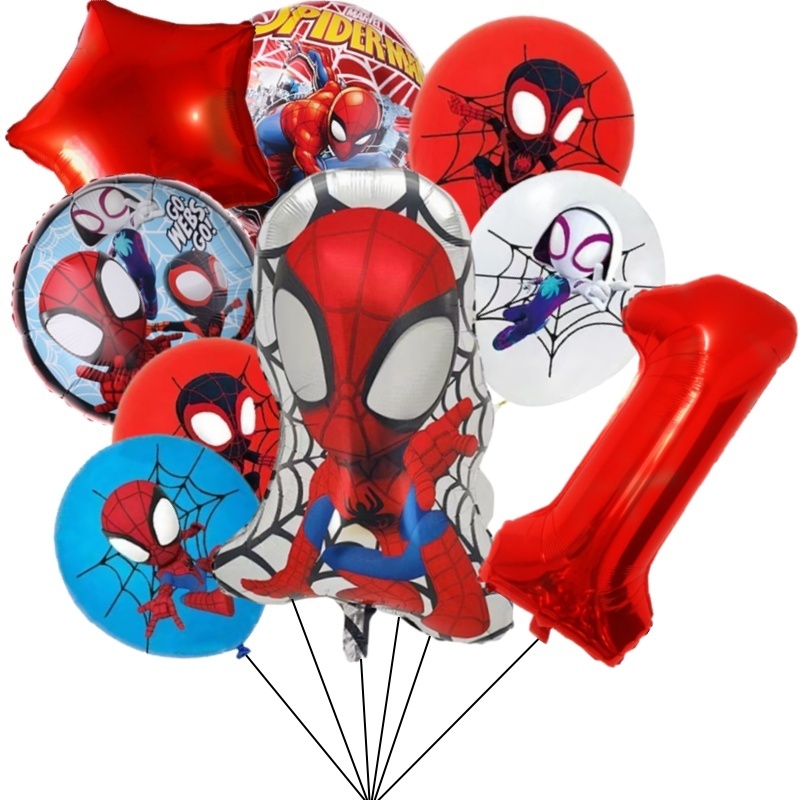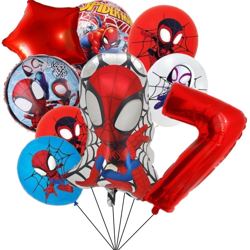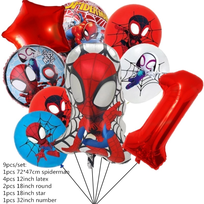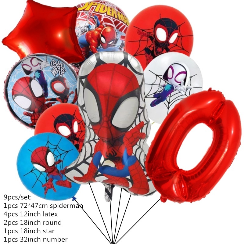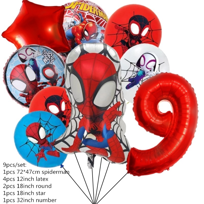 9pcs Spidey E Seu Incrível Amigo Balões De Festa Látex Número Ballon Crianças Menino Super Herói Tema Decorações De Aniv