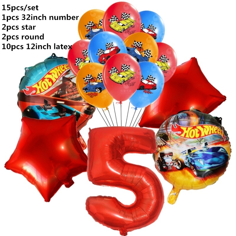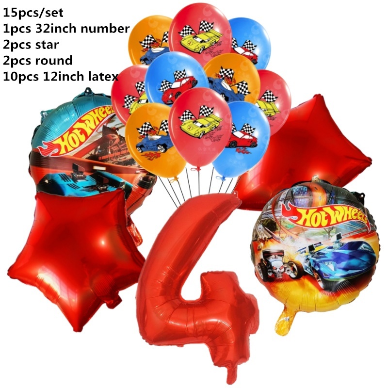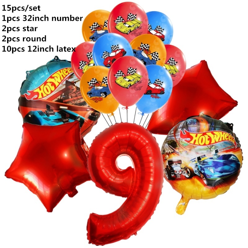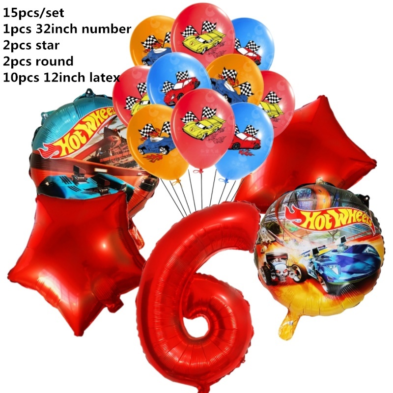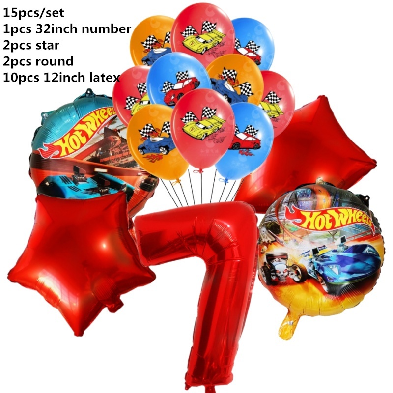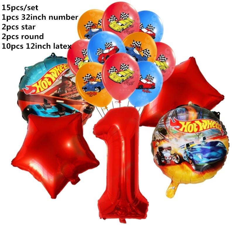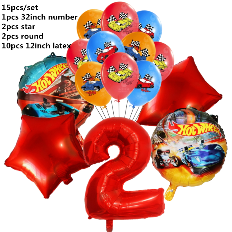 15pcs Hot Wheels Birthday Party Latex Balloon Decorações 32 Polegadas Vermelho Número 1o 2o Balões Conjunto Flamme Cars Globos Para Meninas