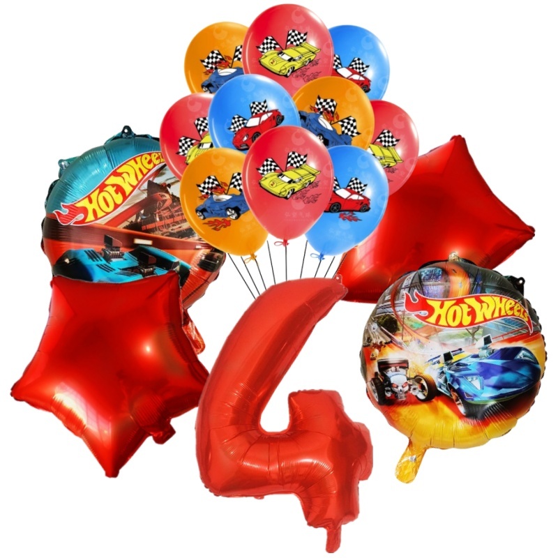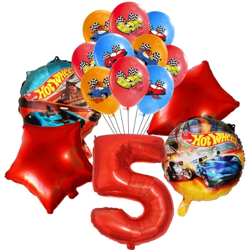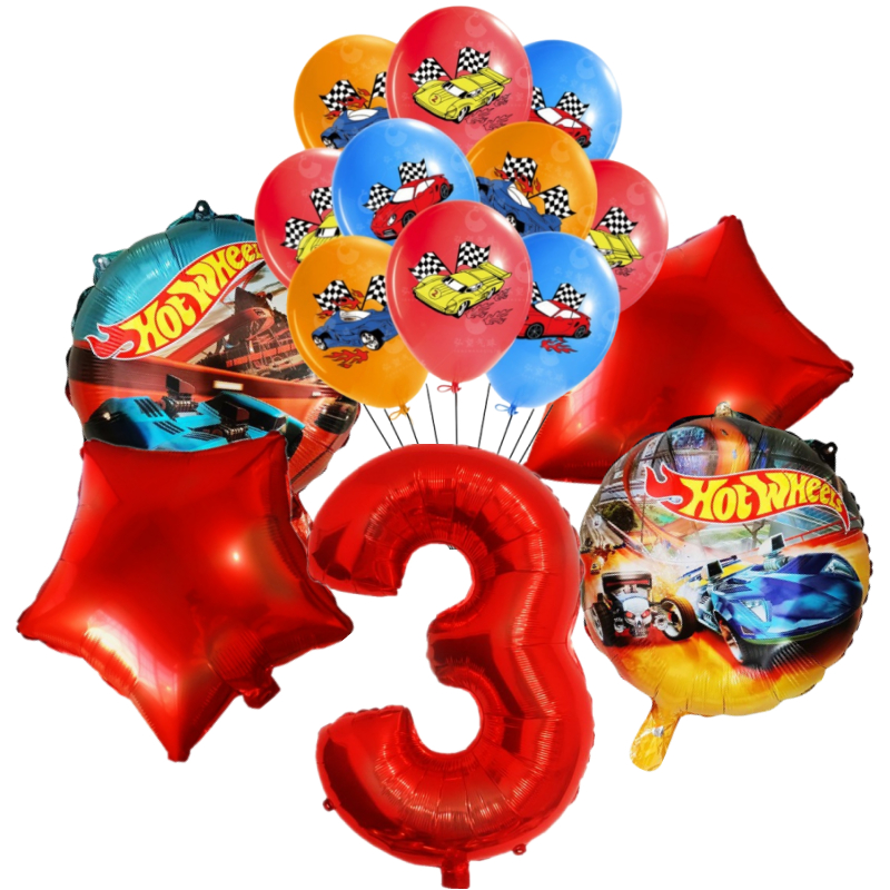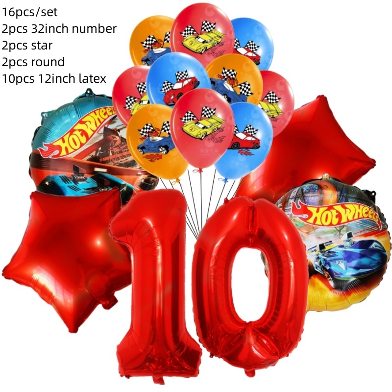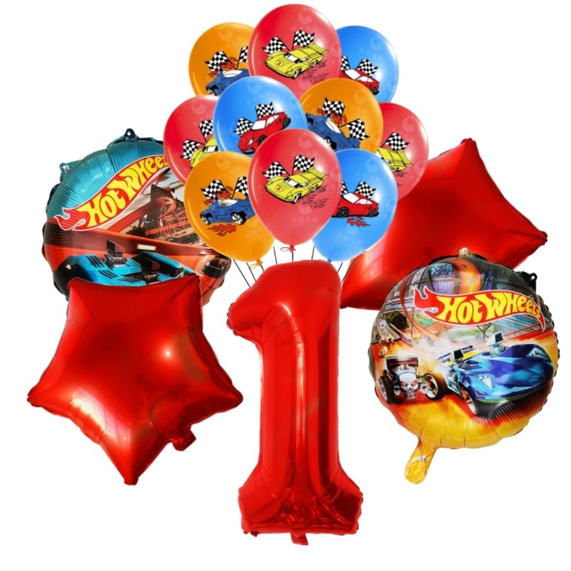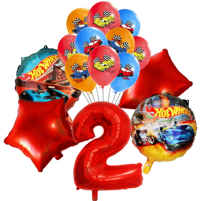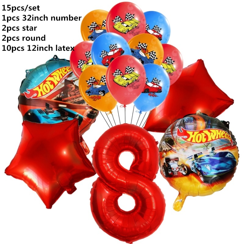 15pcs Hot Wheels Birthday Party Latex Balloon Decorações 32 Polegadas Vermelho Número 1o 2o Balões Conjunto Flamme Cars Globos Para Meninas