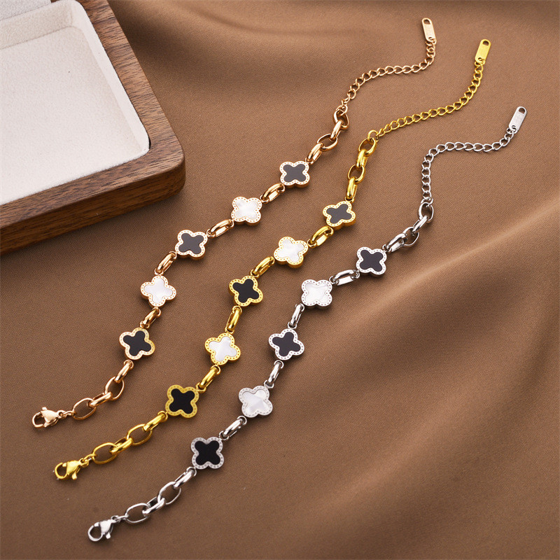 Versão coreana preto e branco ouro sorte quatro folhas titânio aço pulseira para mulheres sen set moda acessórios