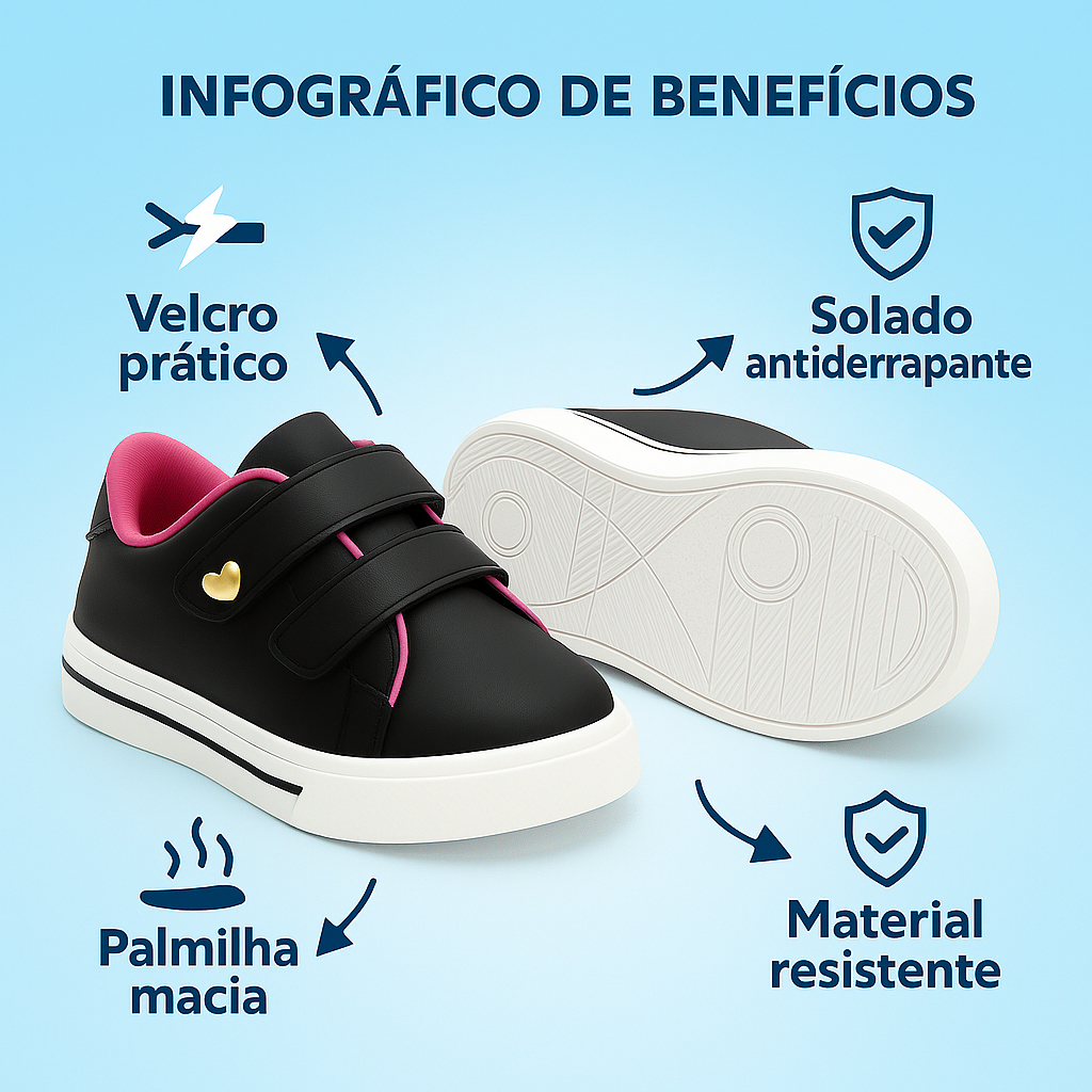 Tênis Infantil Velcro Antiderrapante Confortável Escola Passeio Menina 20 Ao 27
