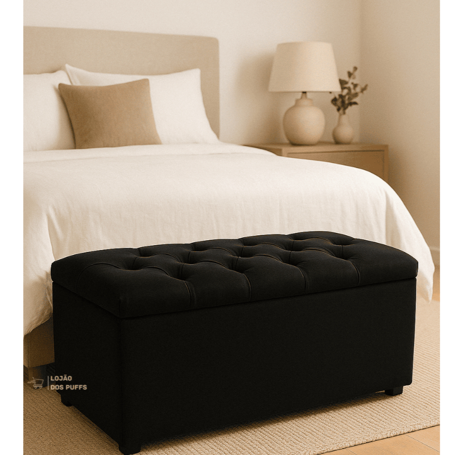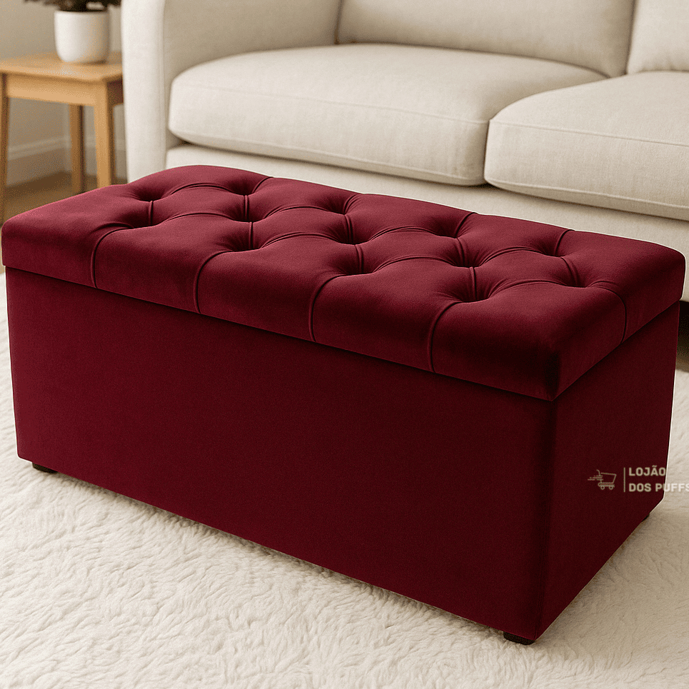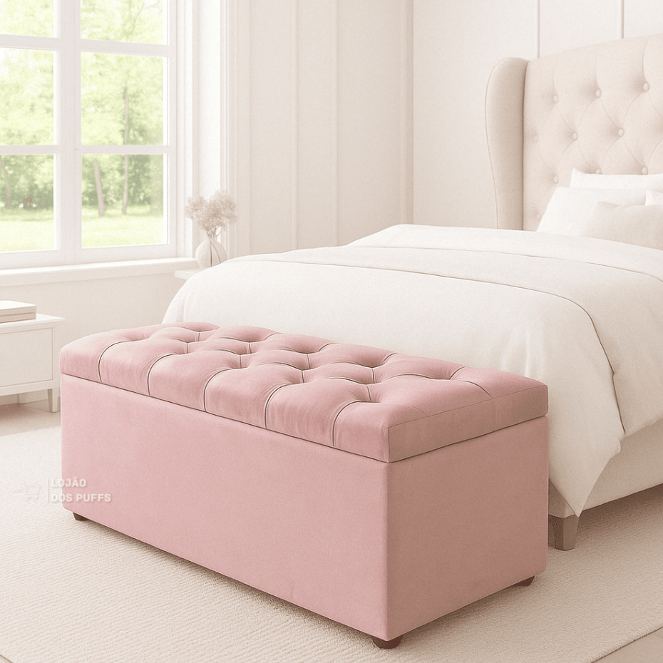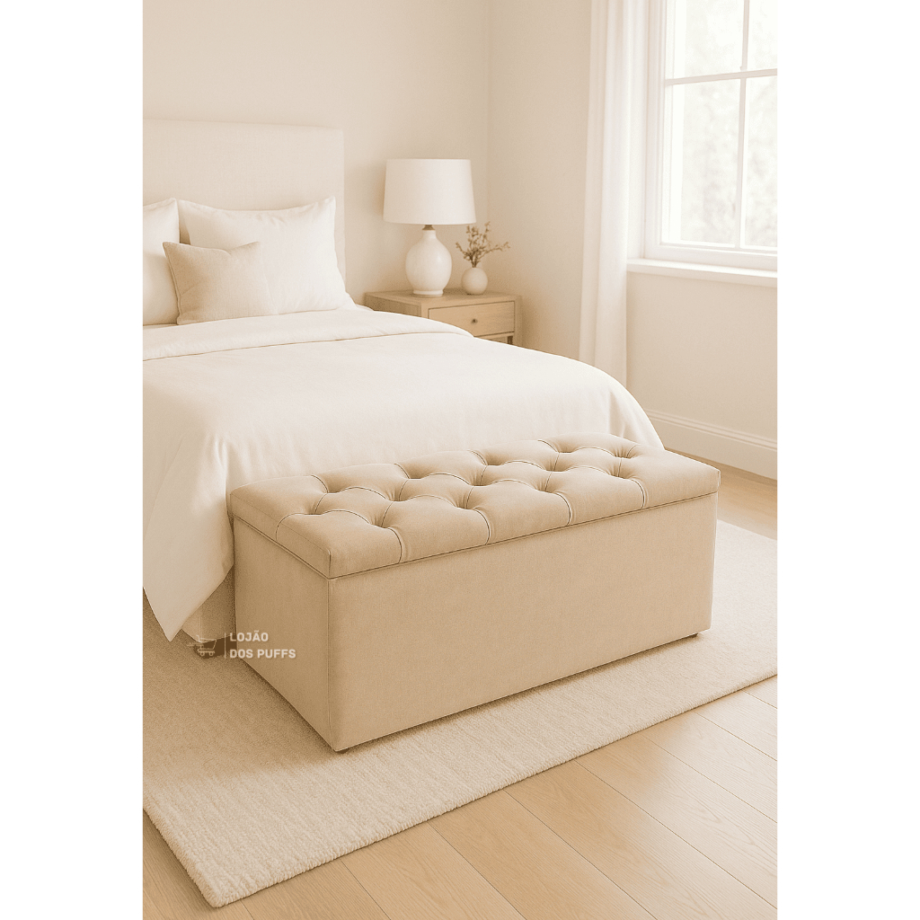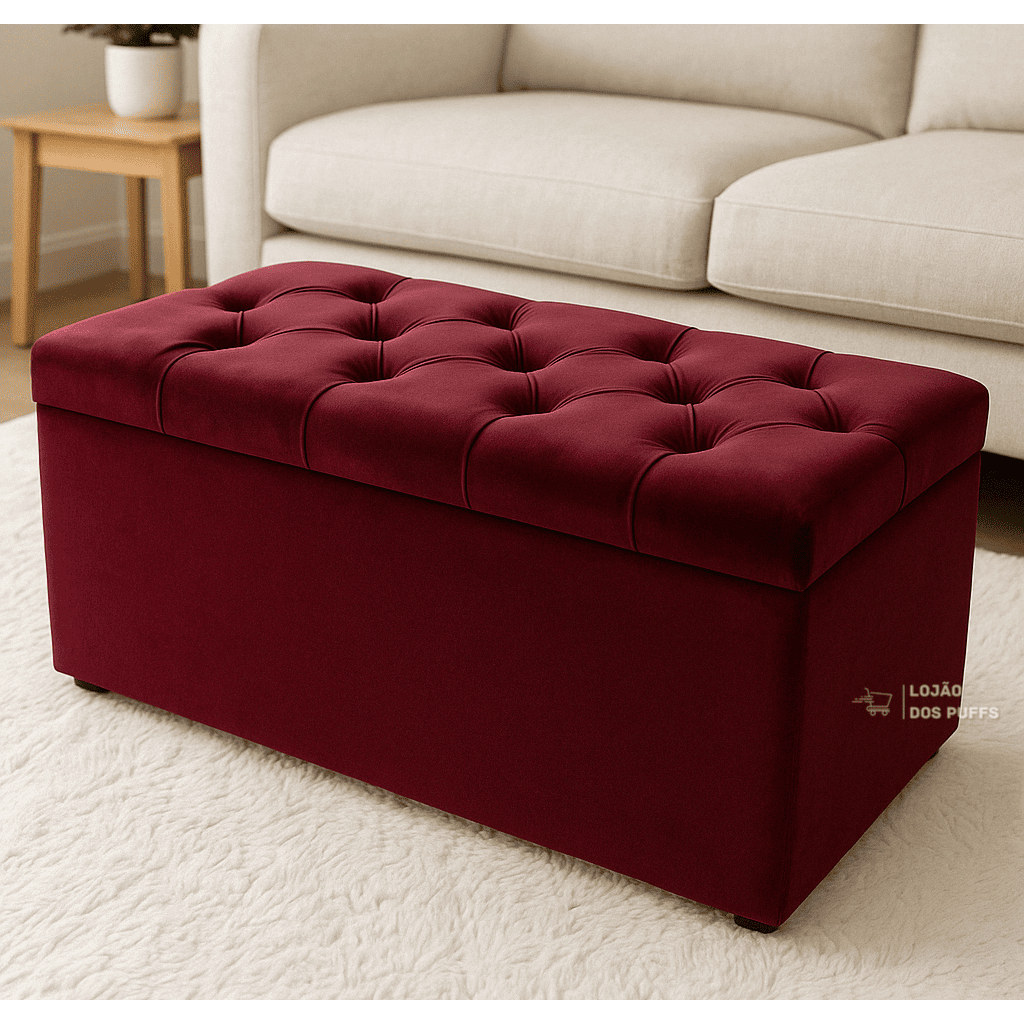 PUFF BAU CAPITONE SUEDE VELUDO PÉ DE CAMA PORTA OBJETOS BRINQUEDOS SAPATOS CASA DECORAÇÃO - PROMOÇÃO