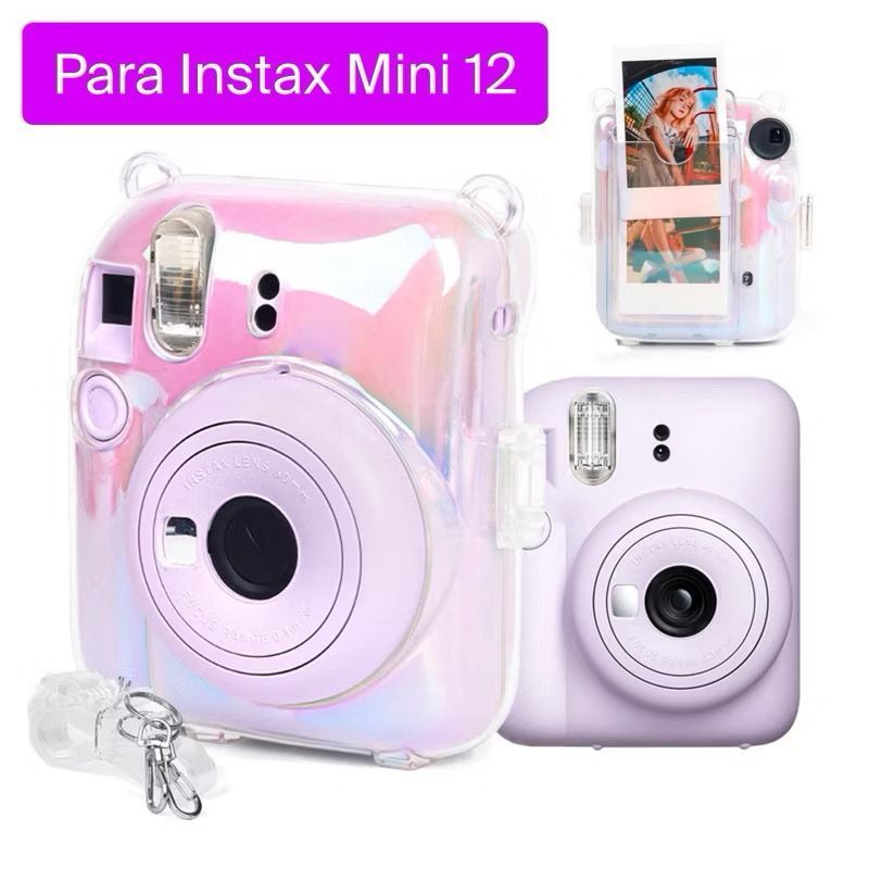 Bolsa Capa Case Holografica para Câmera Instax Mini 12 com Espaço para Fotos