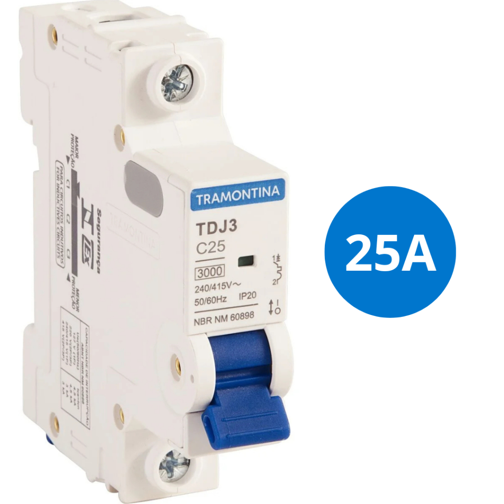 Disjuntor Monopolar Tramontina TDJ3 Curva C 3kA – 25A / 32A / 40A / 50A