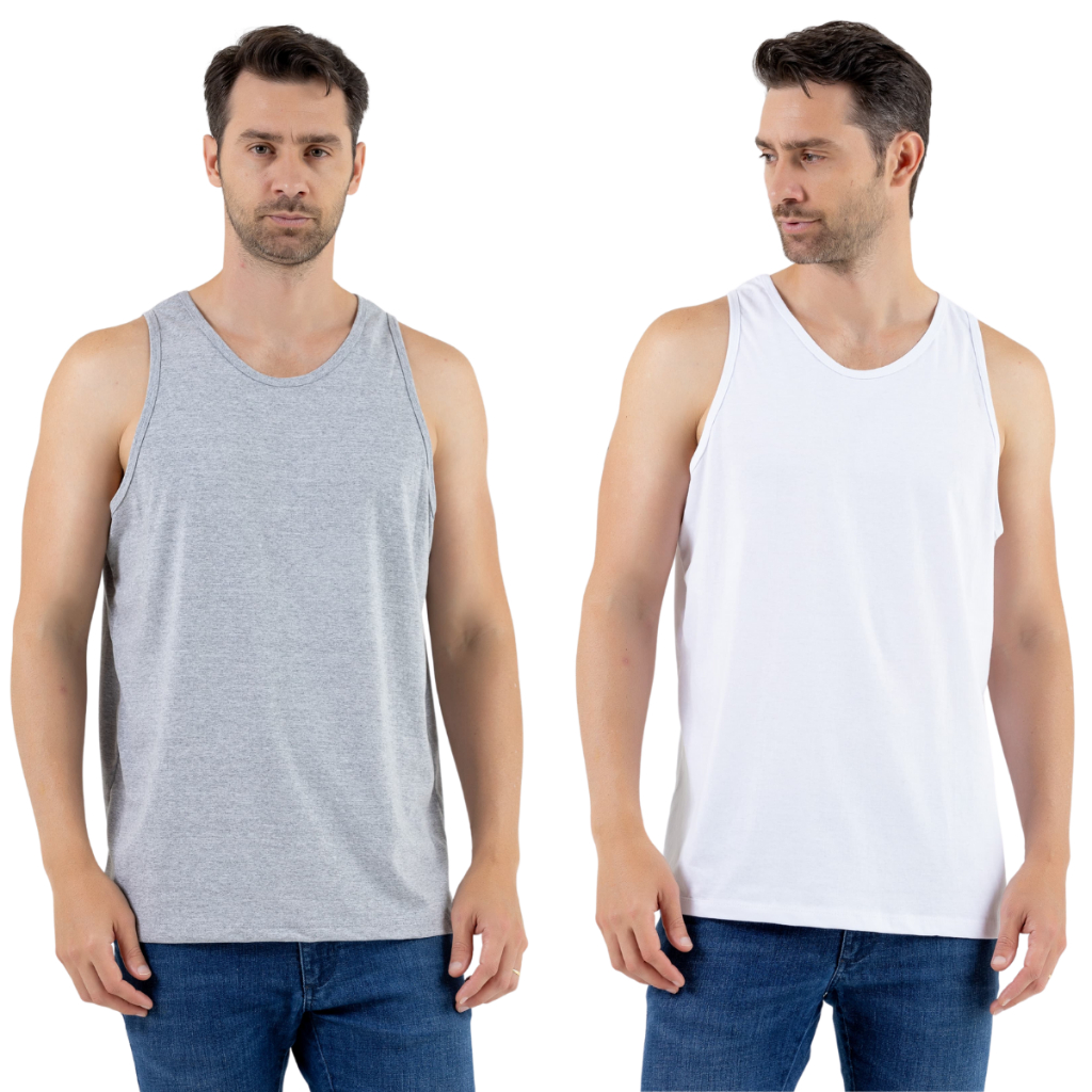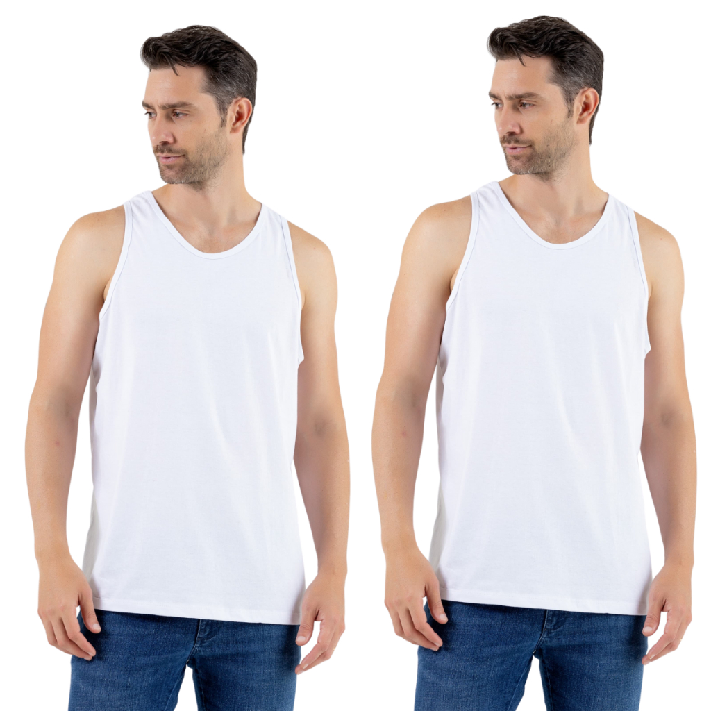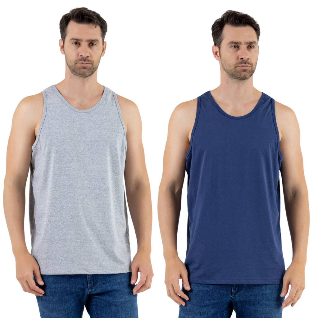 KIT 2 Regata Masculina Básica sem estampa 100% Algodão cores Preto Branco Azul e Cinza