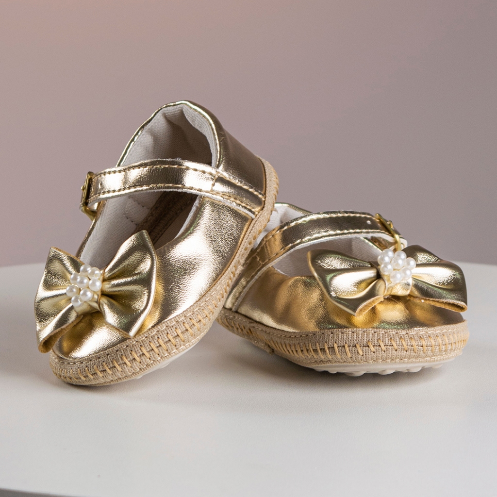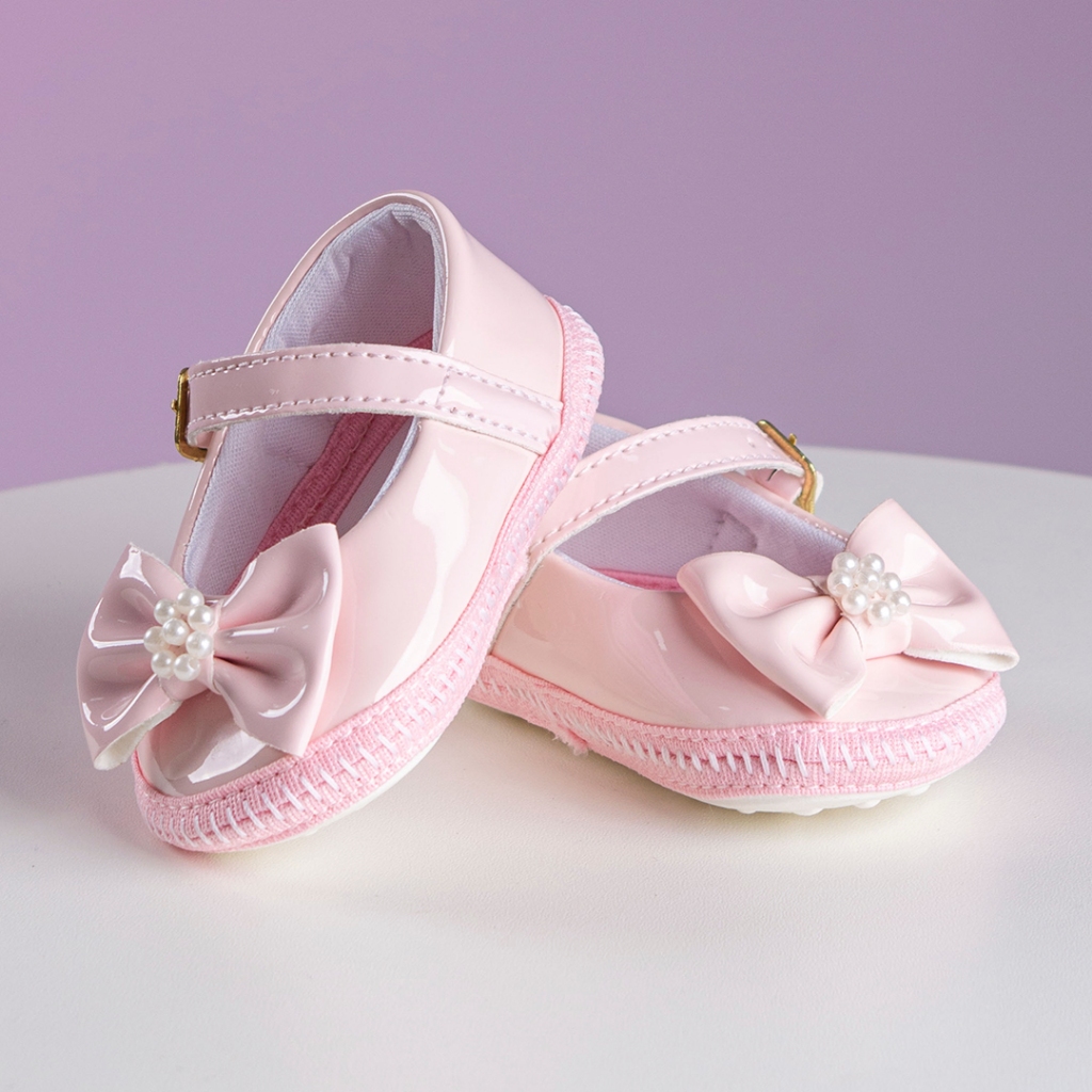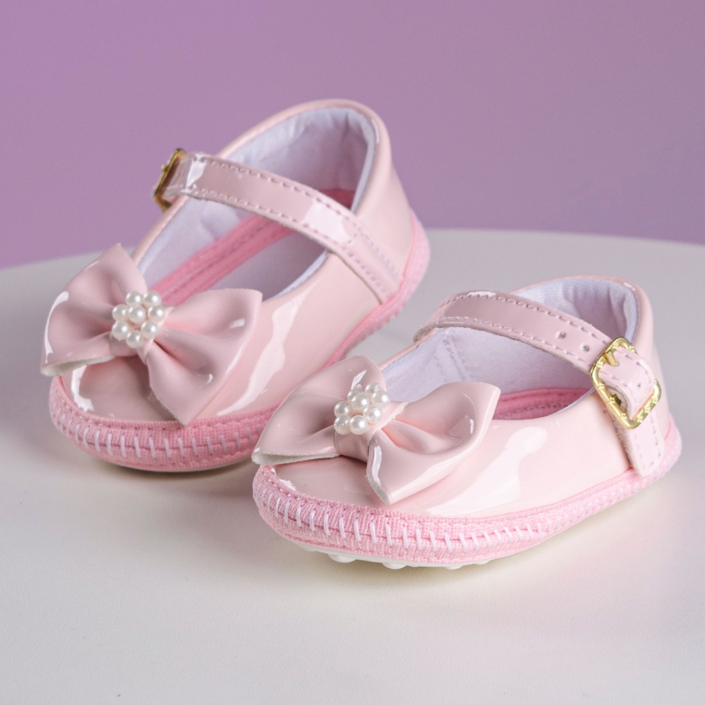Sapatilha Infantil Bebê Menina Laço com Pérola Batizado Festa Benne Kids Promoção Natal Ano Novo