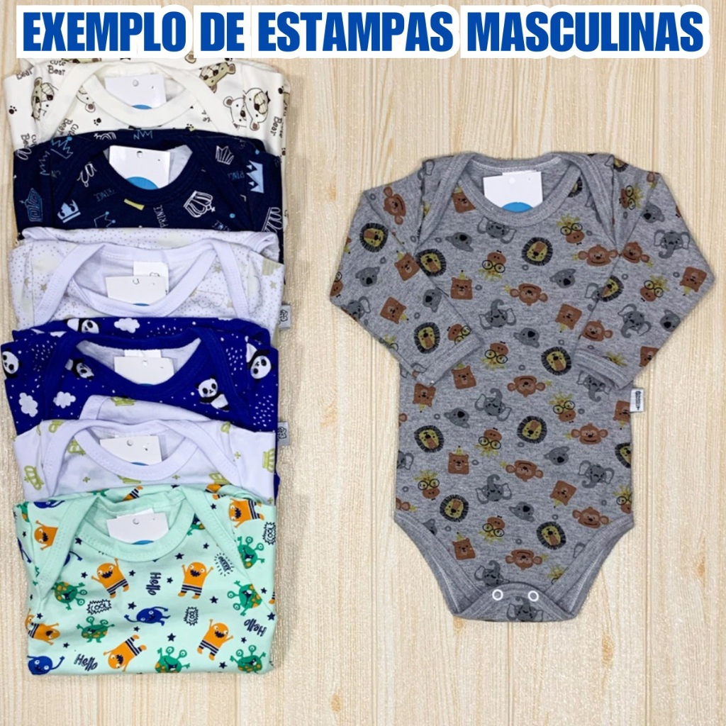 3 Unidades Body Manga Longa Para Bebê Infantil Estampado