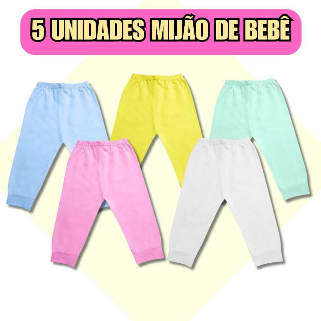 Kit 5 Mijao De Bebê Menina Menino Calça Infantil Sem Pé Cores Lisas