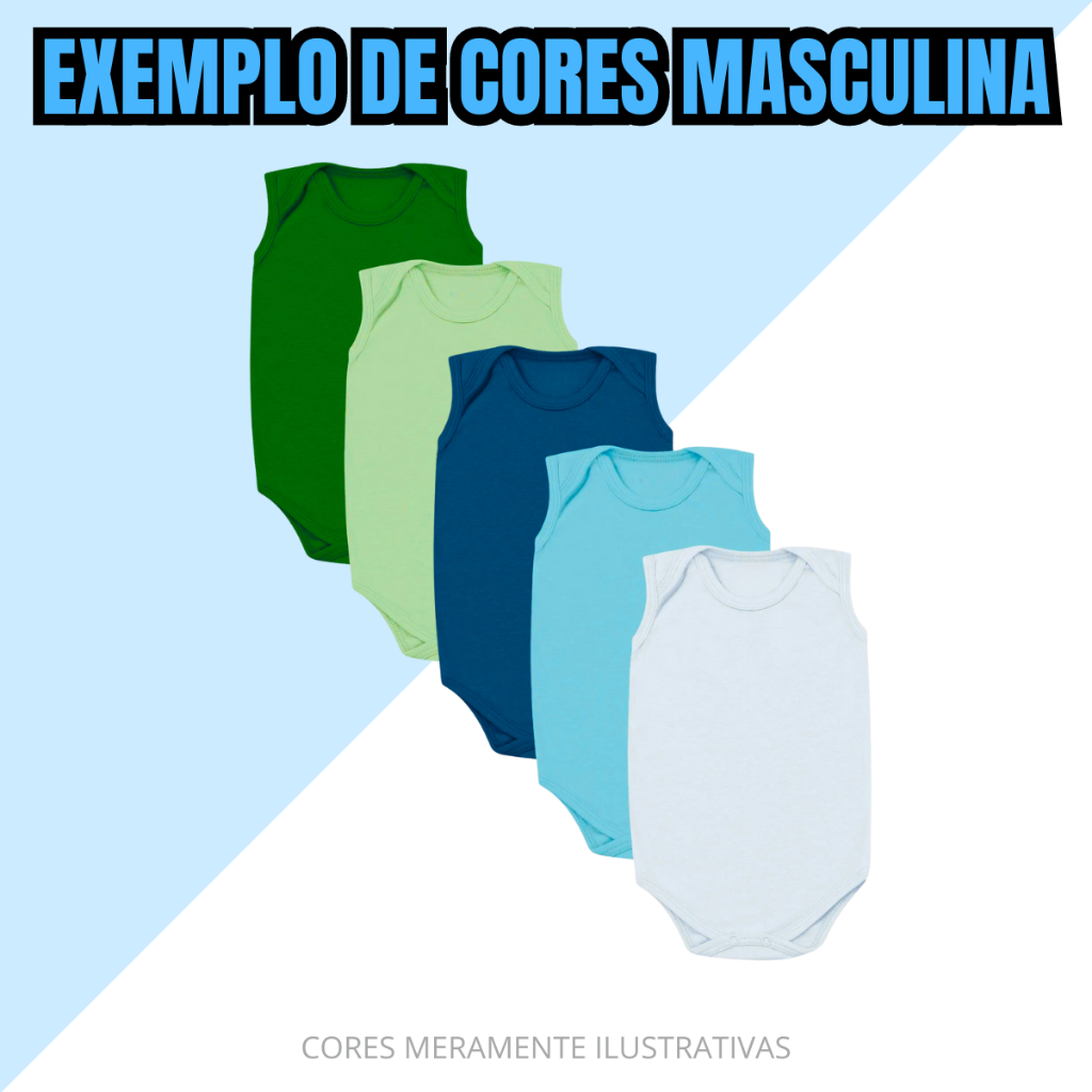Kit 5 Body Regata Sem Manga Liso Infantil Bebê Menino Menina