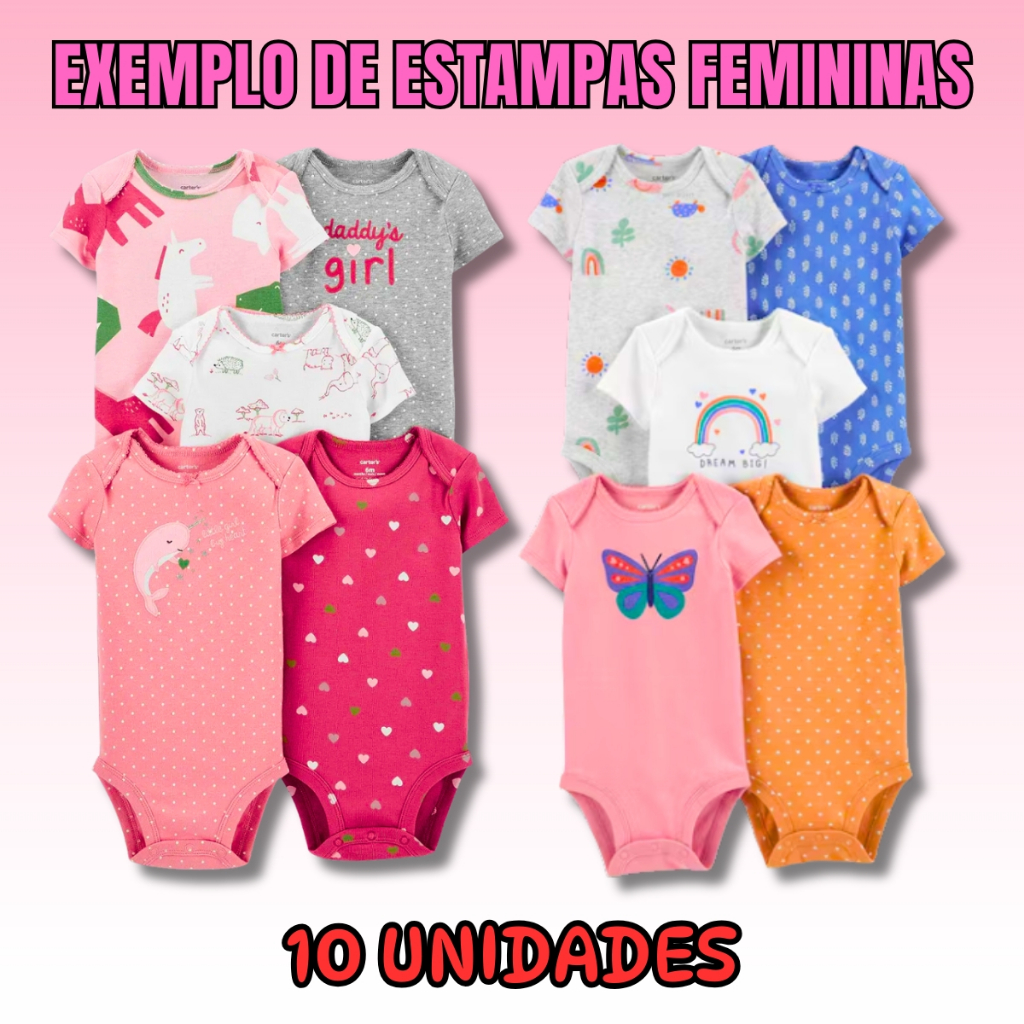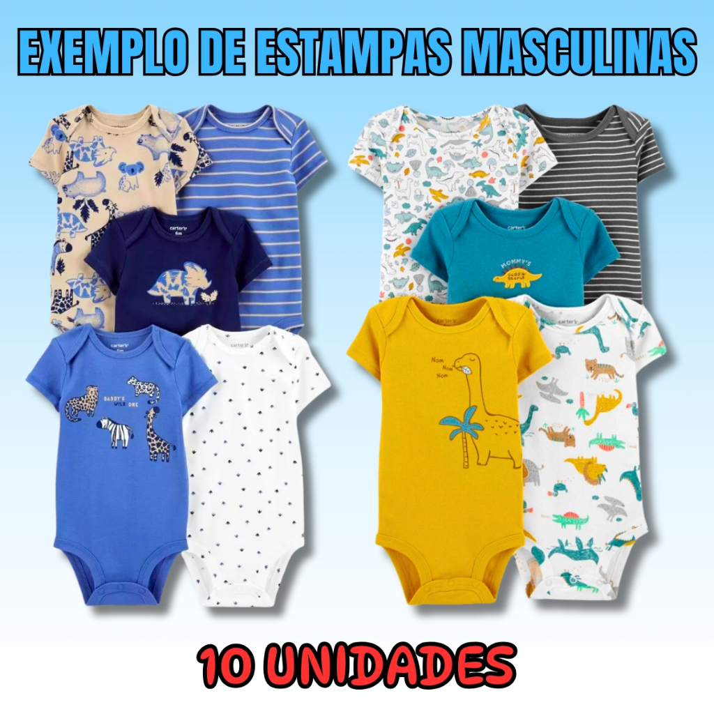 Kit 10 Peças Roupinha de Bebê Infantil Body Manga Curta Estampado
