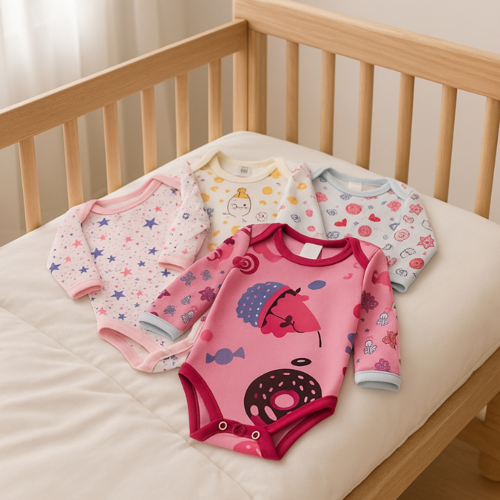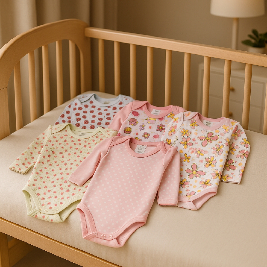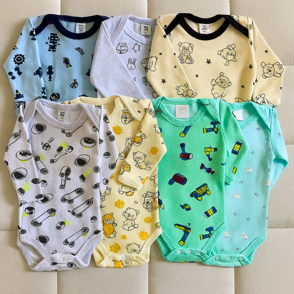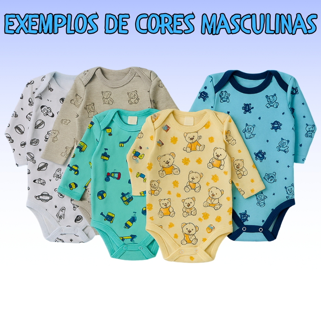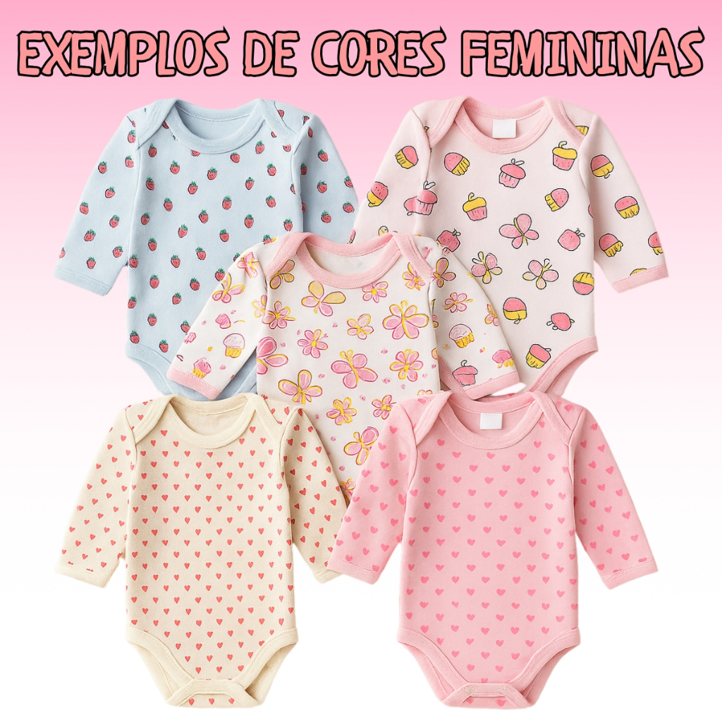 Kit 5 Peças Roupinha Enxoval de Bebê Body Manga Longa Estampado 100% Algodão