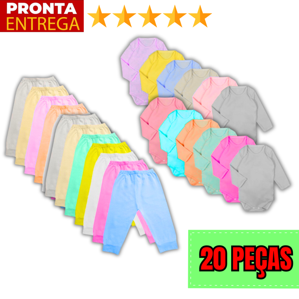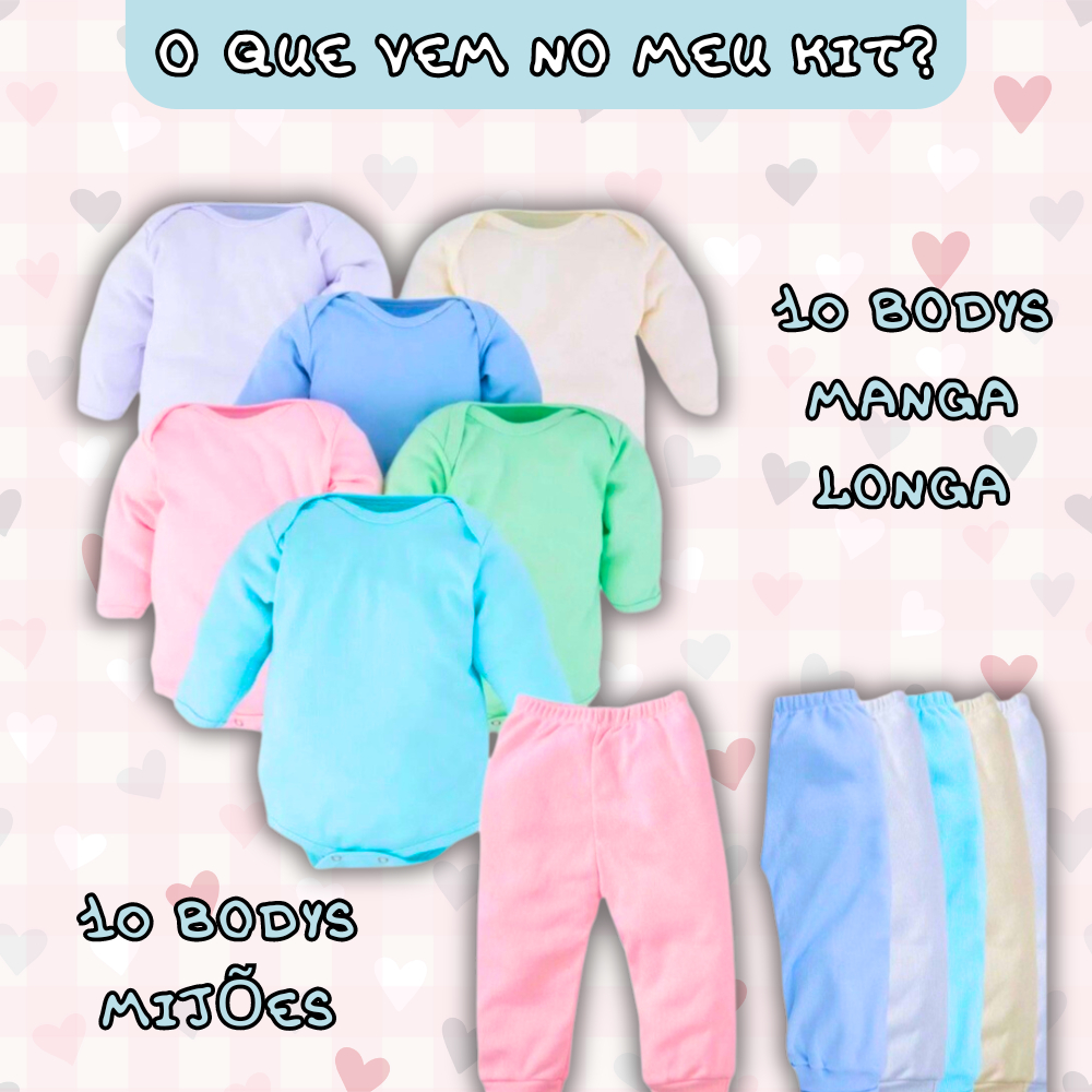Kit Enxoval Infantil 20 Peças Body Manga Longa E Mijão De Bebê Menino E Menina
