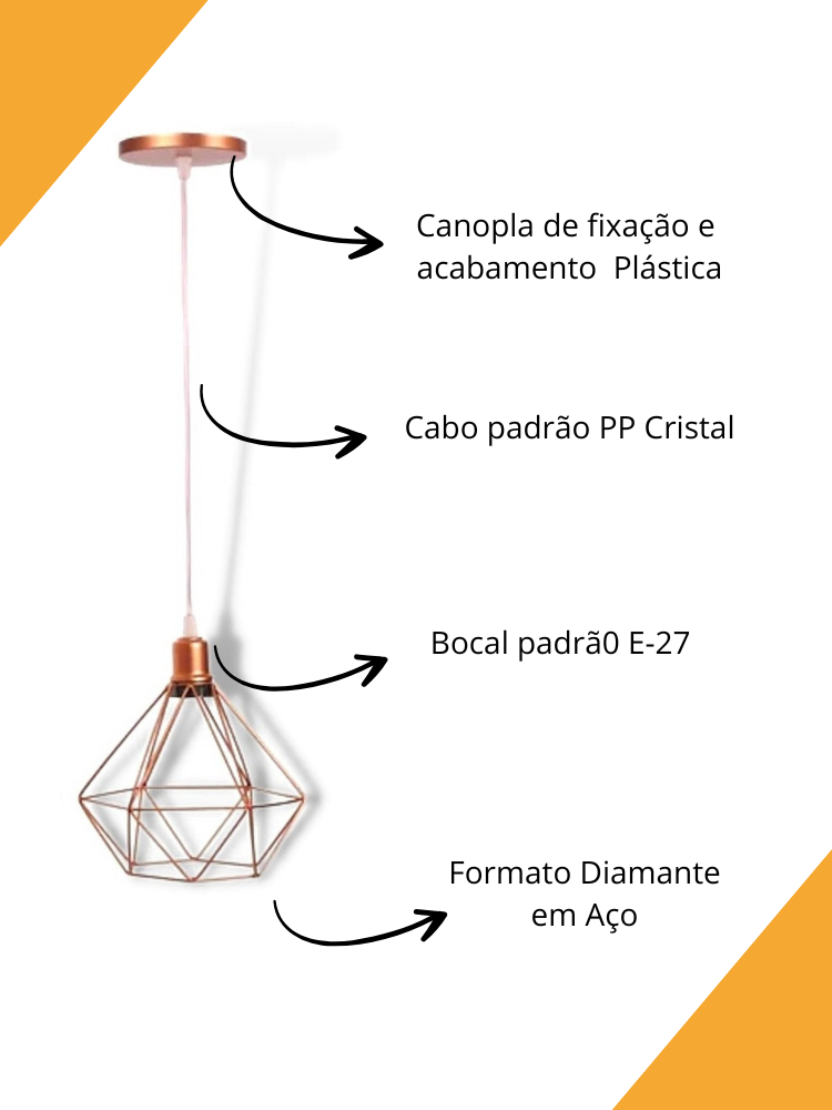 kit 2 Pendente Aramado Diamante Rose GOLD Cabo Cristal