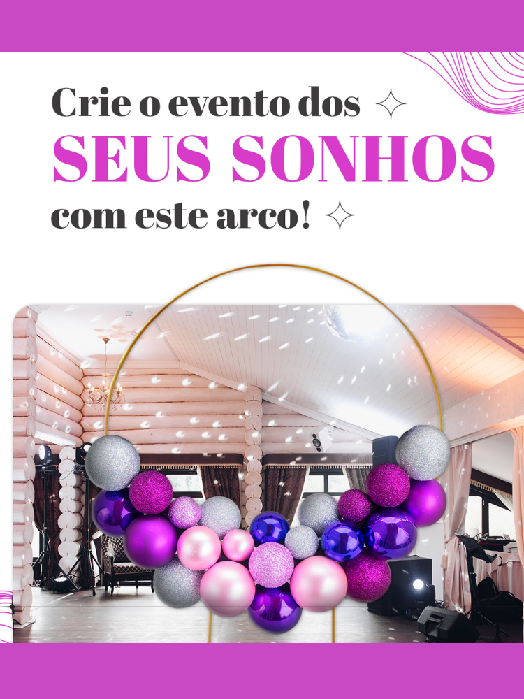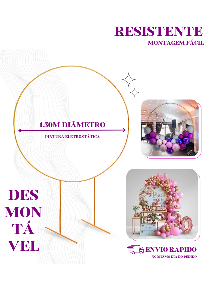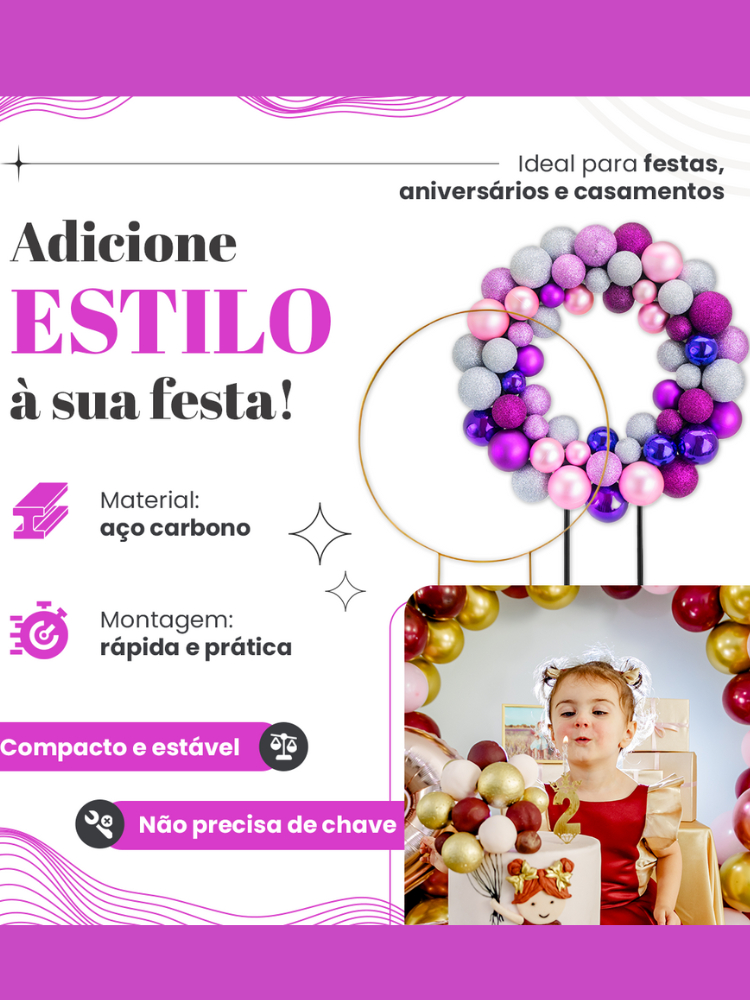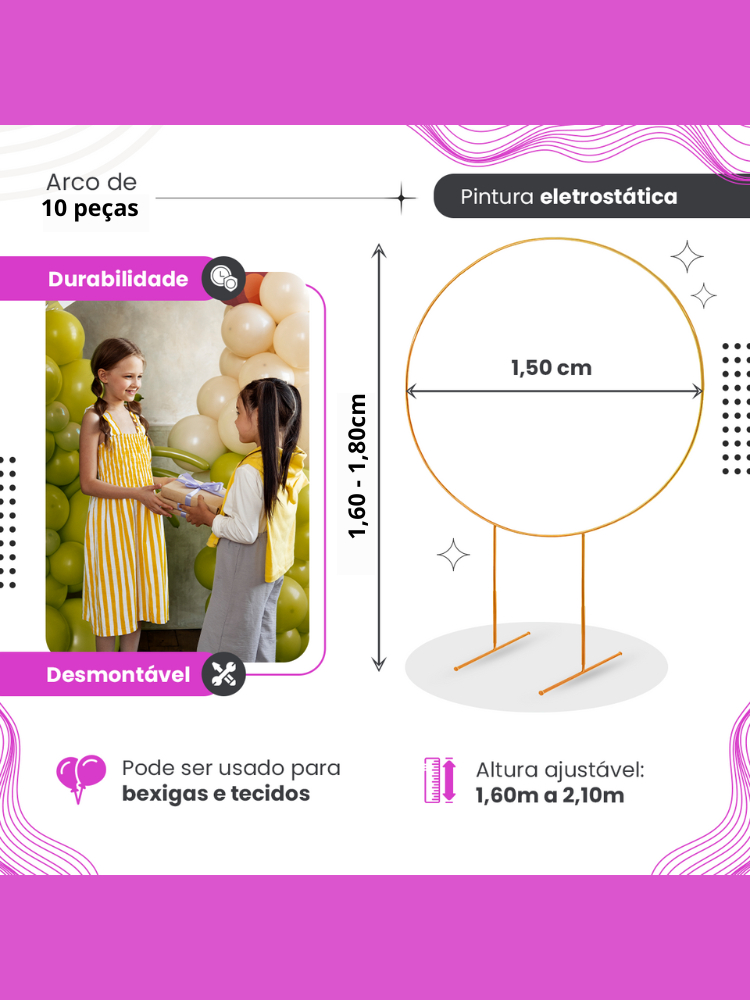 Estrutura Arco Redondo 1,50m Desmontável Ferro Reforçado Regulável para Festas e Decoração Bexigas
