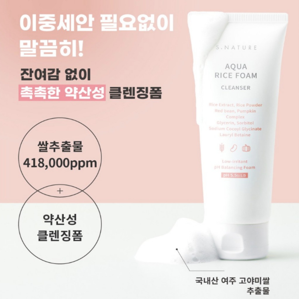 [S.Nature Aqua Rice Facial Foam Cleanser Ácido Fraco De Espuma De Limpeza 160ml