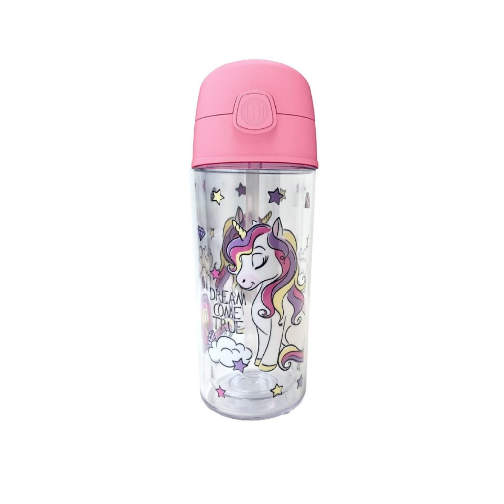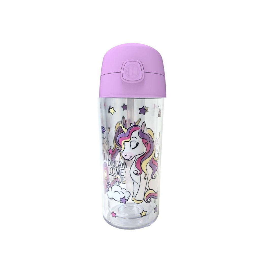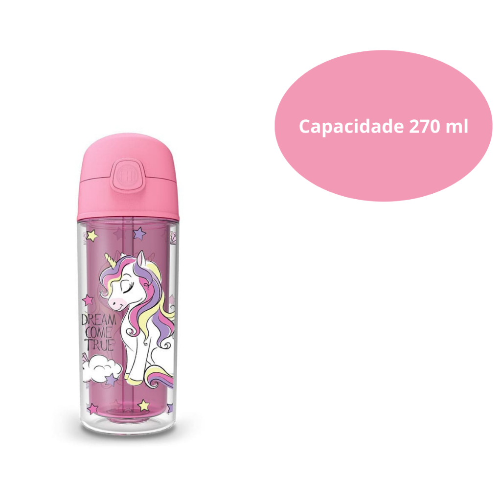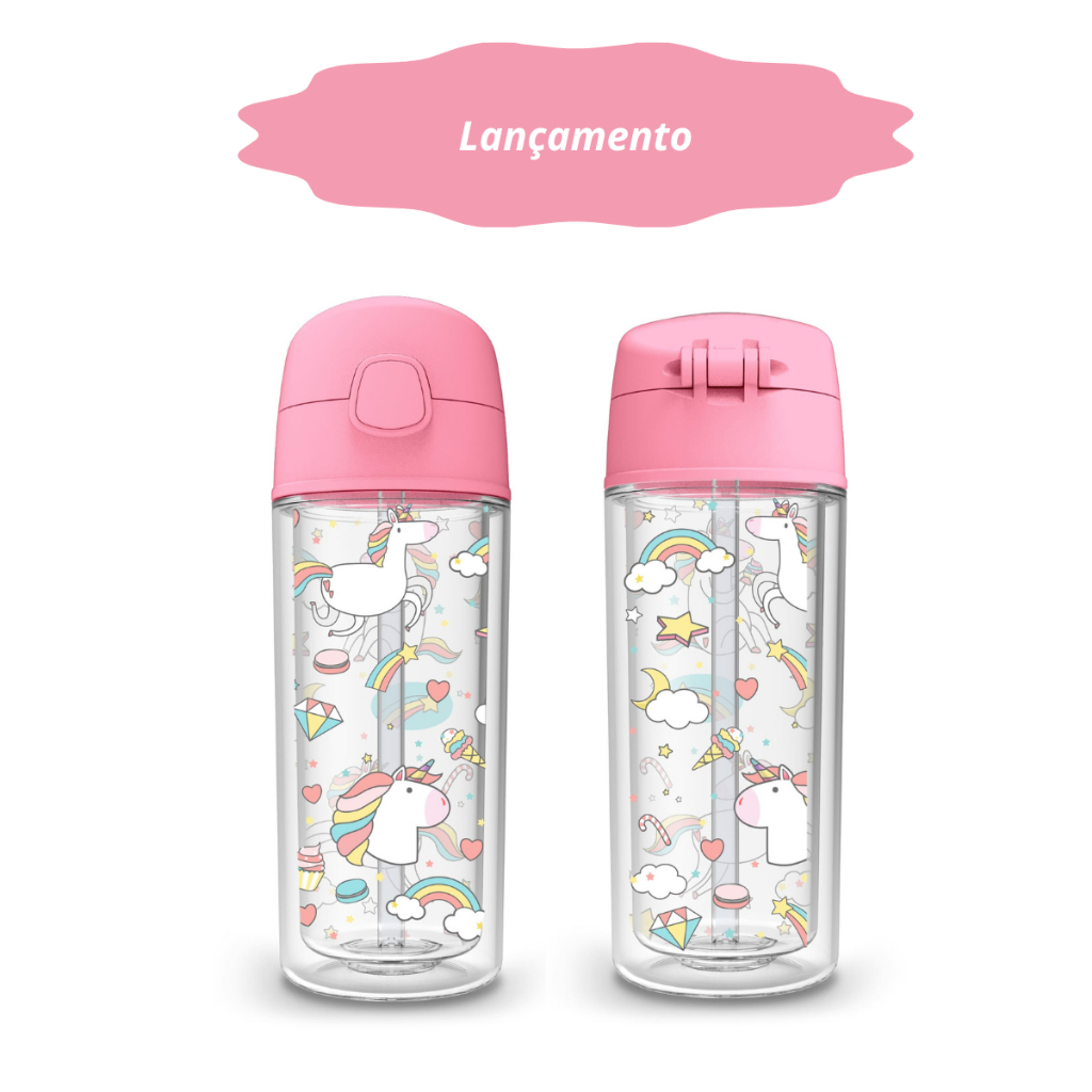 Garrafa Infantil de água Unicórnio 270ml canudo silicone