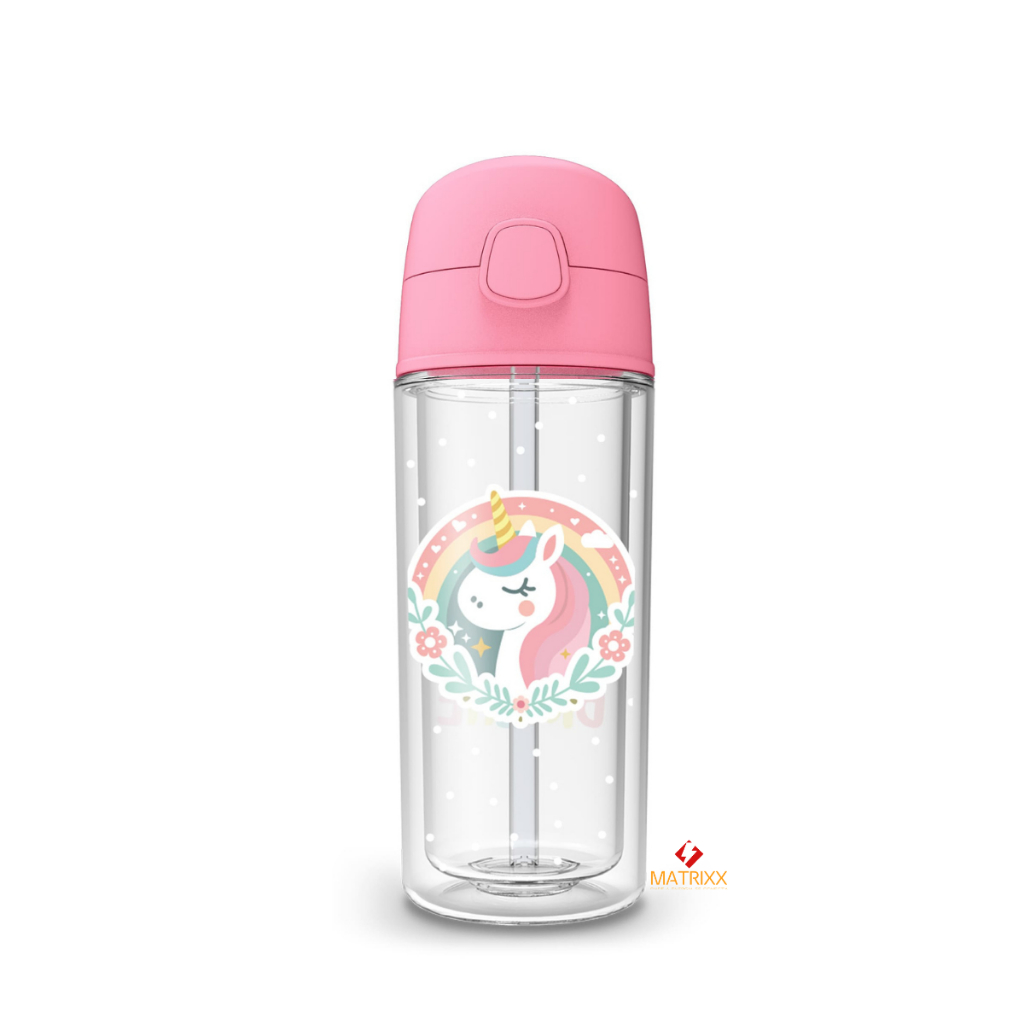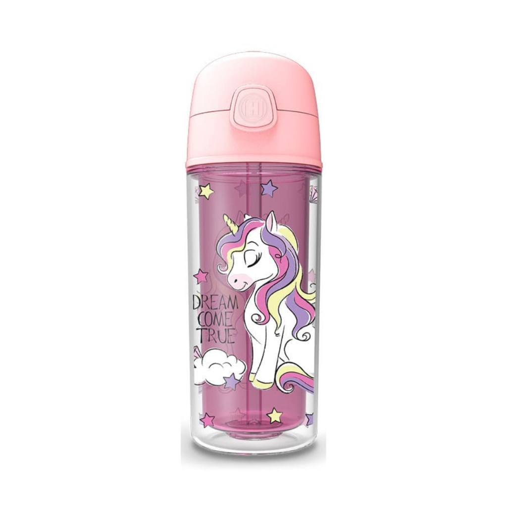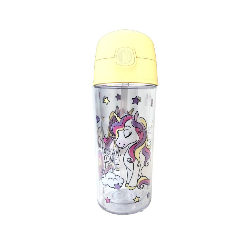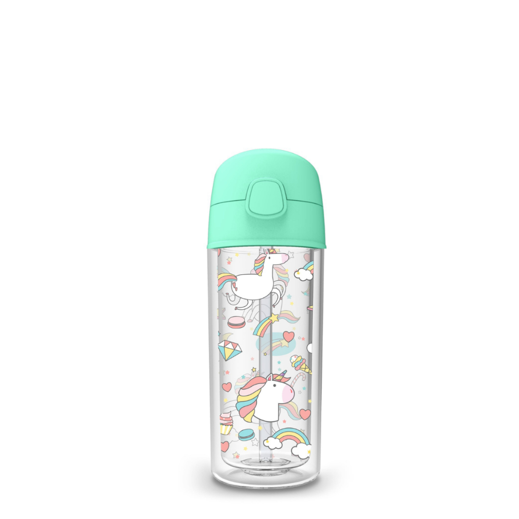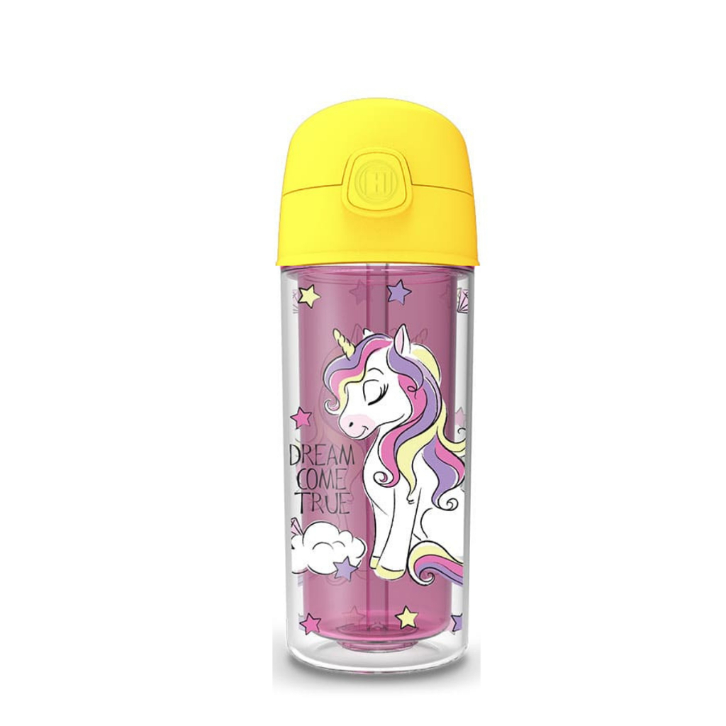 Garrafa Infantil de água Unicórnio 270ml canudo silicone