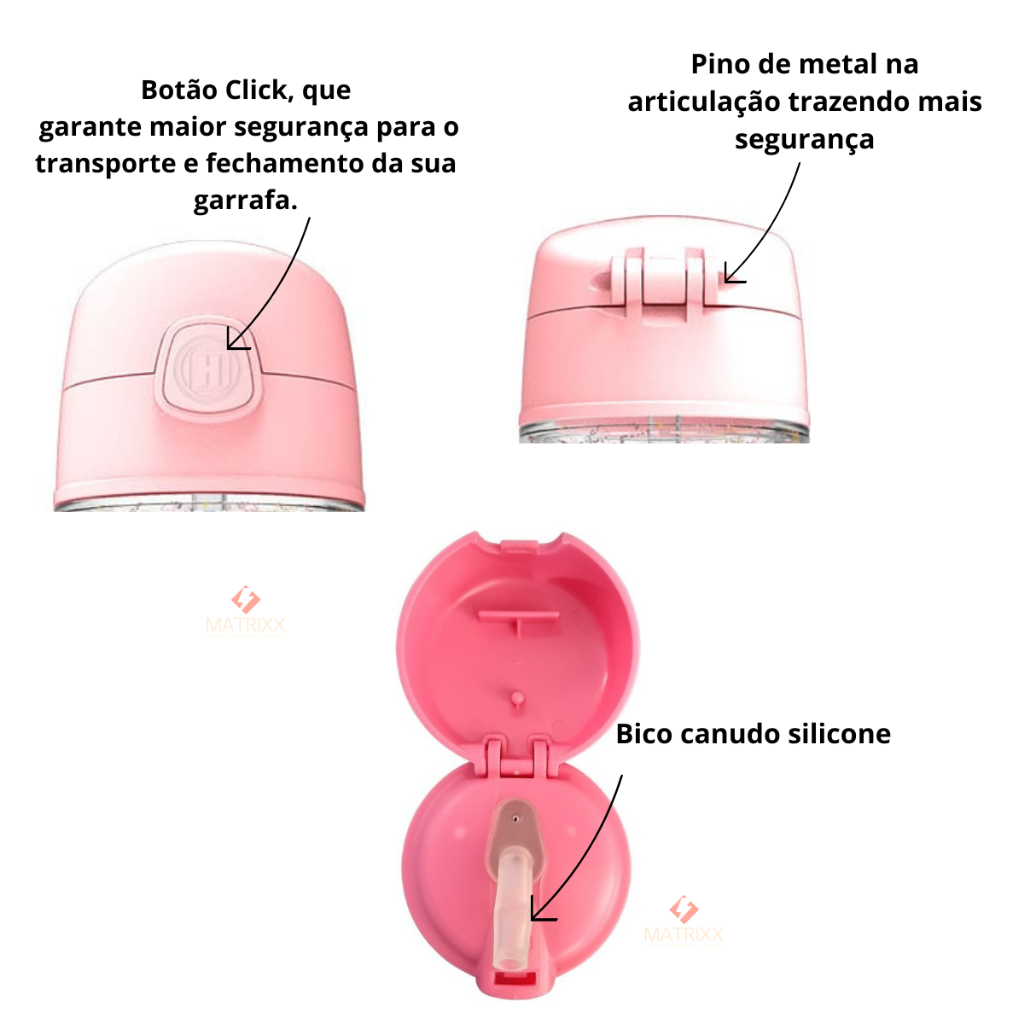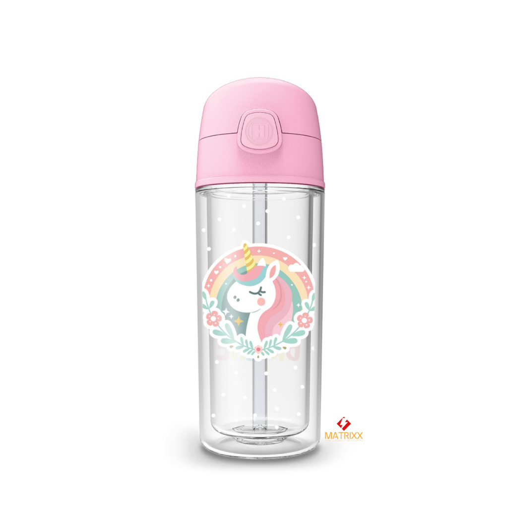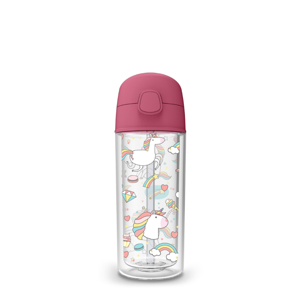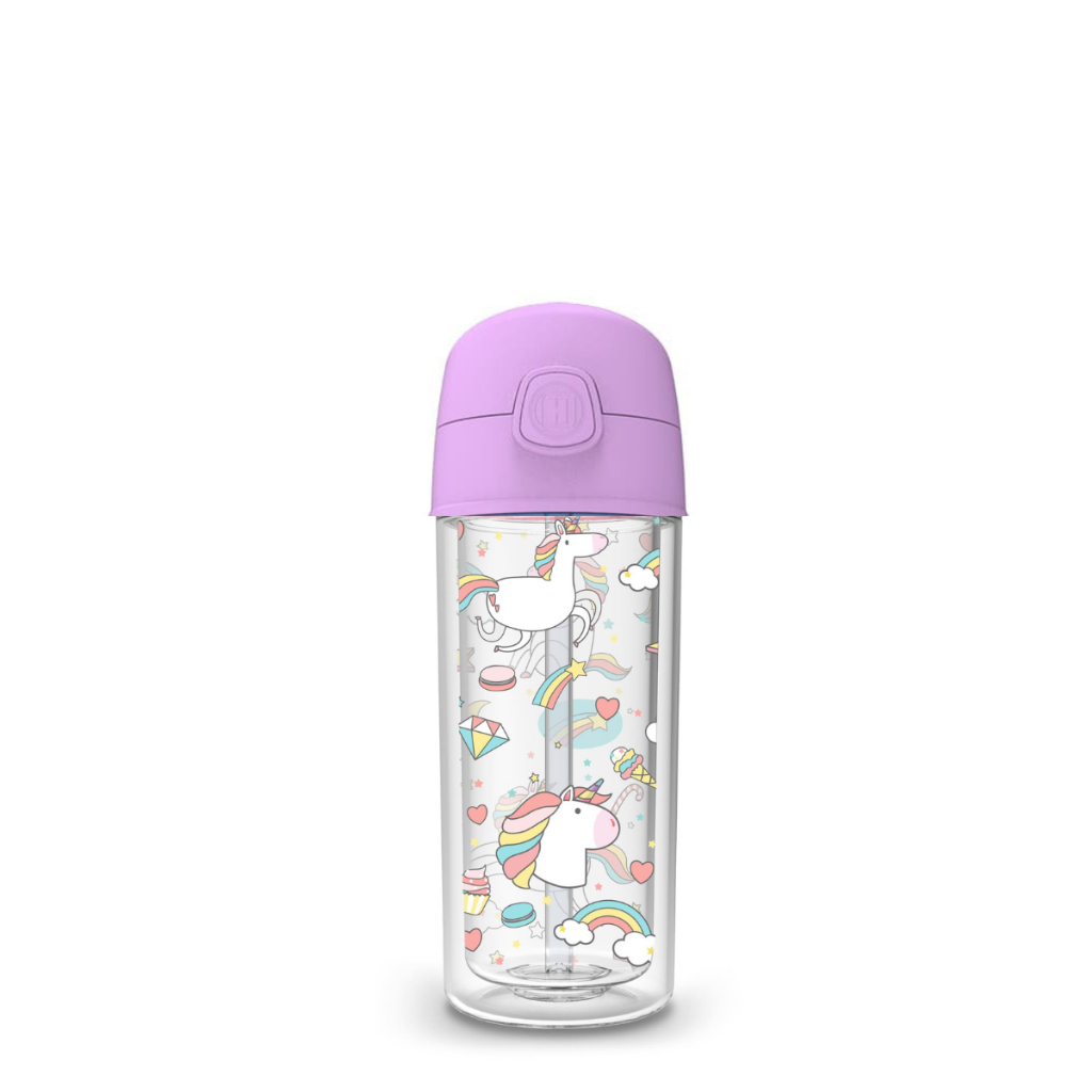 Garrafa Infantil de água Unicórnio 270ml canudo silicone
