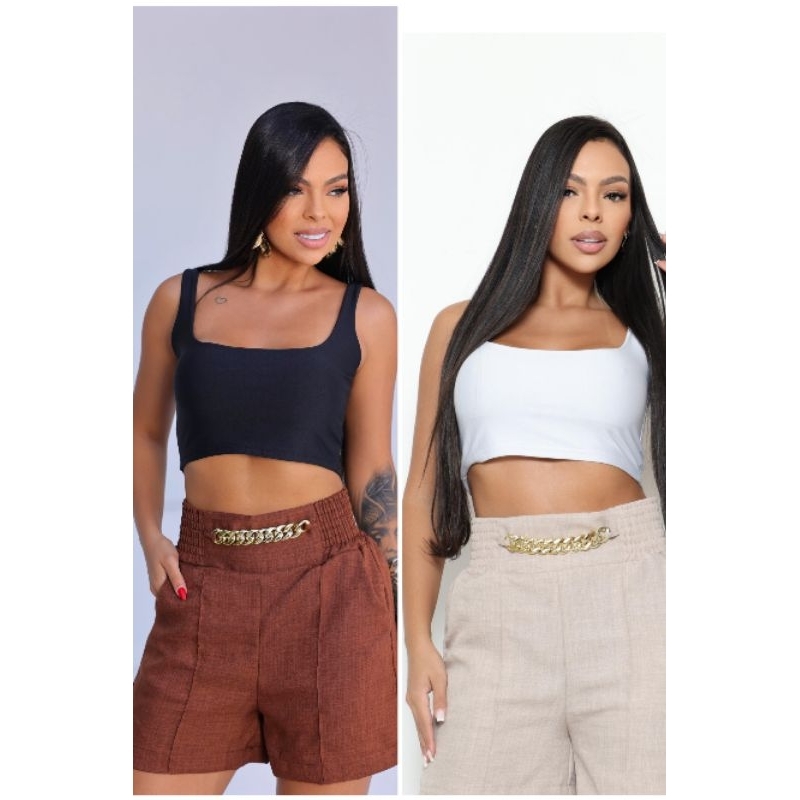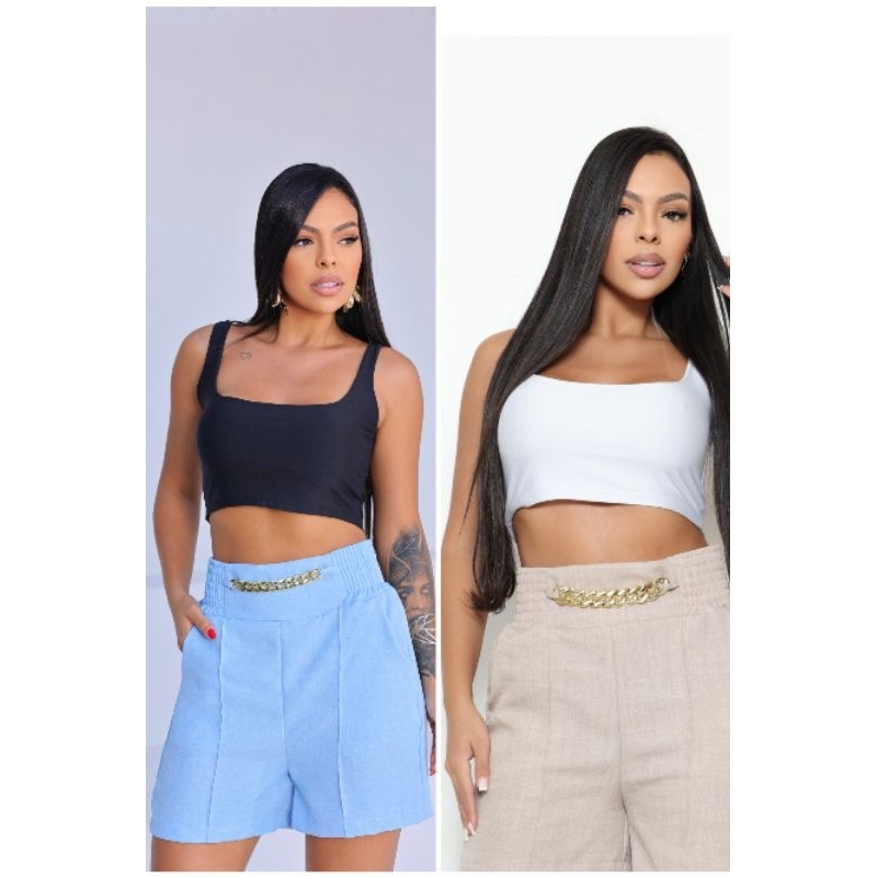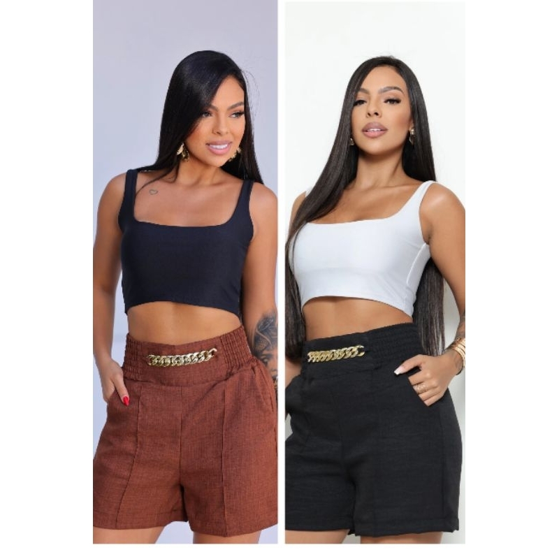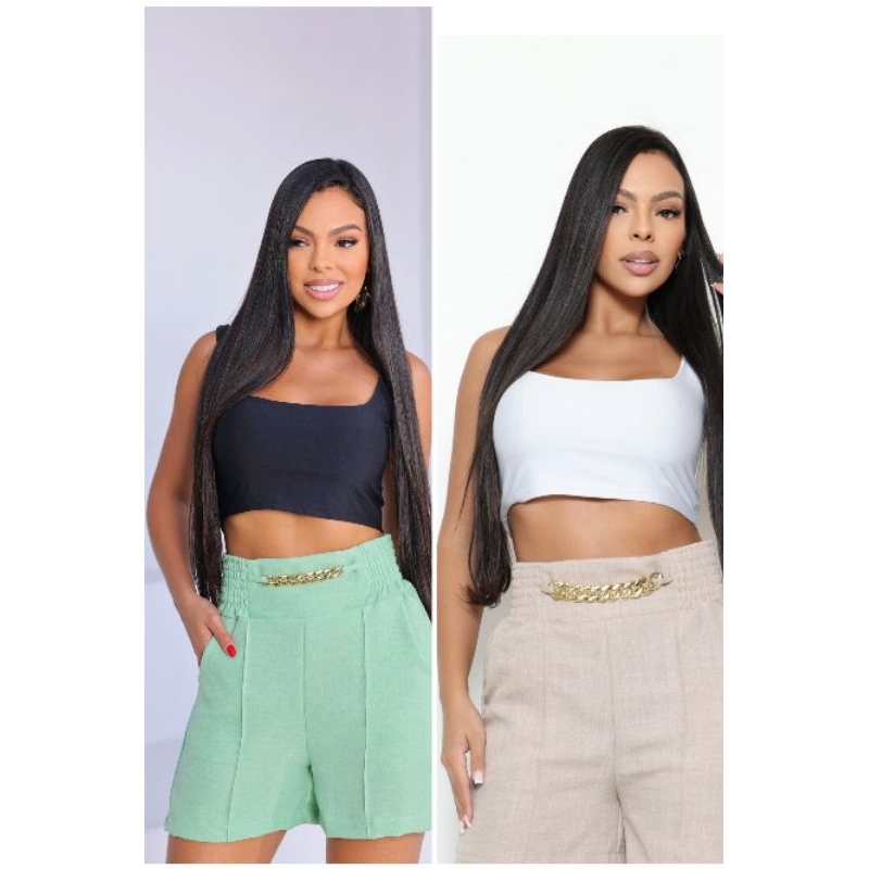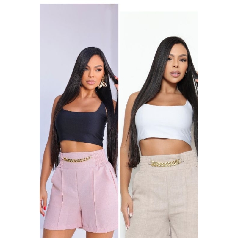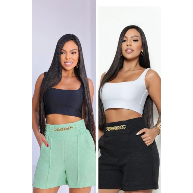 Kit 2 Shorts Linho Premium| Cintura Alta + Corrente – Leve, Elegante e Estiloso