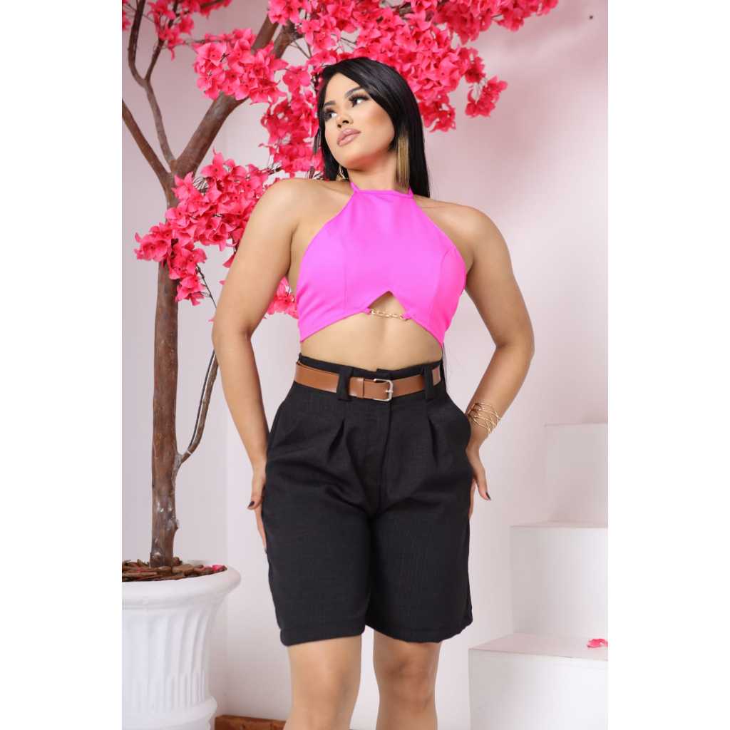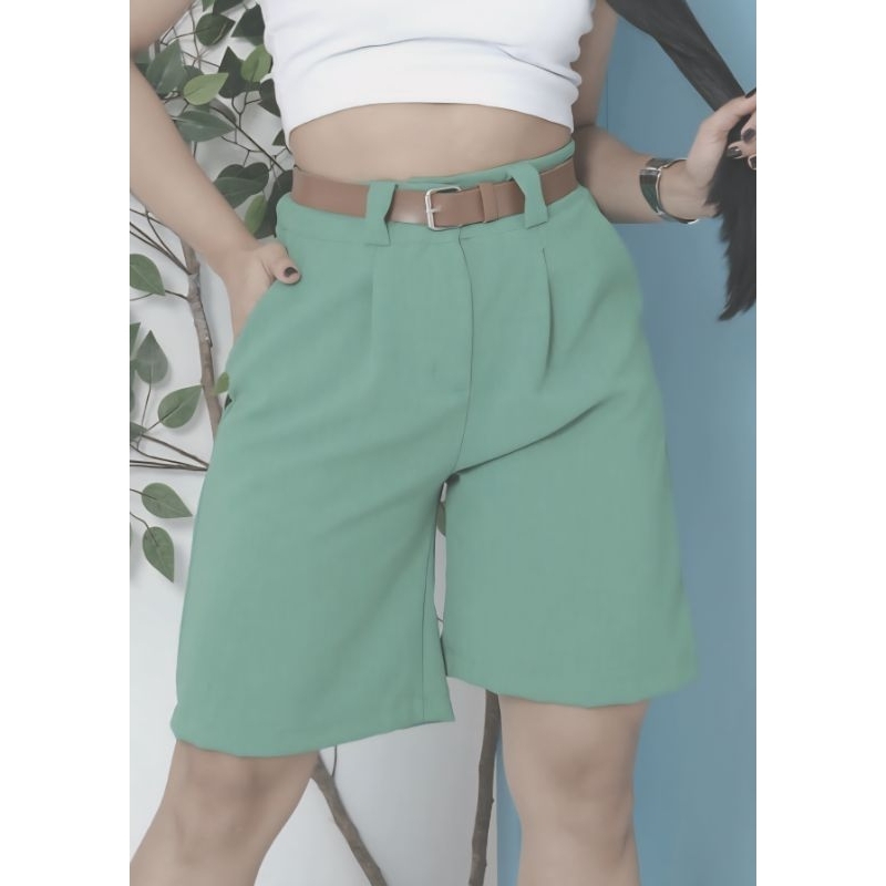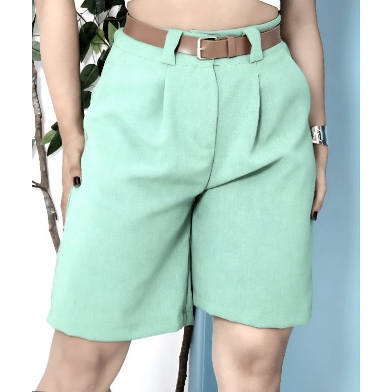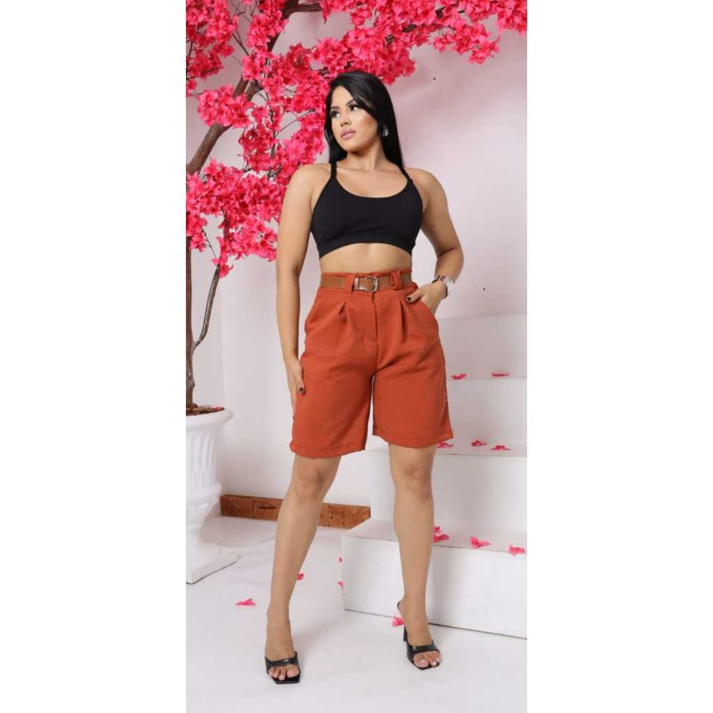 Bermuda De Linho Feminina Social Alfaiataria con Cinto Marron.