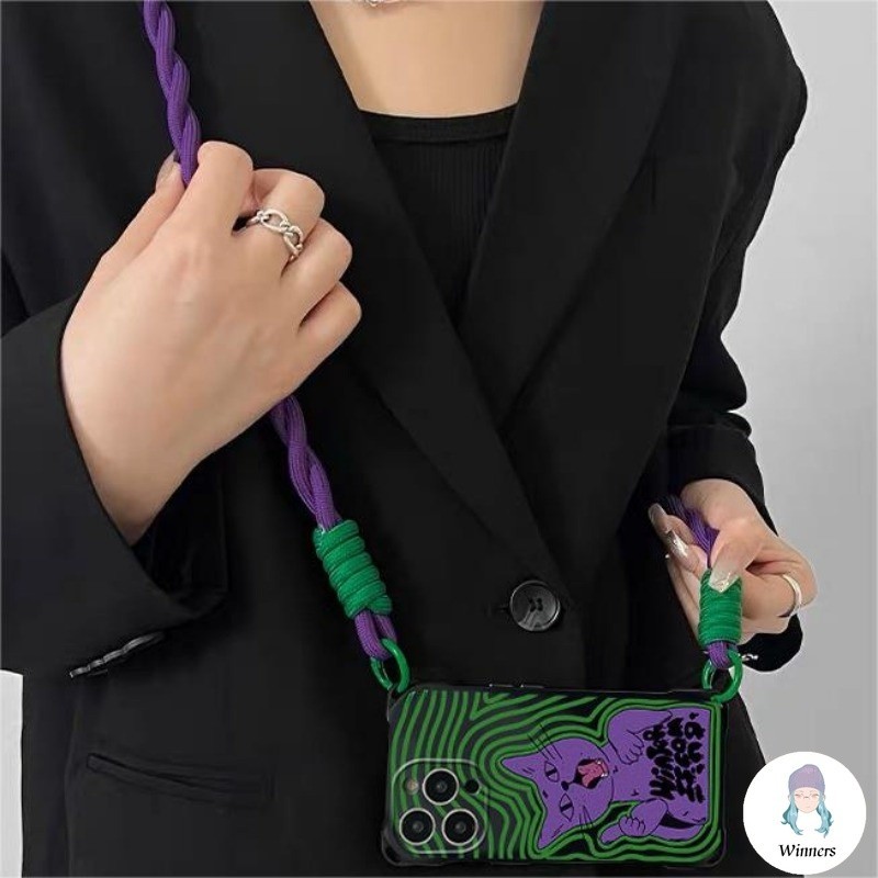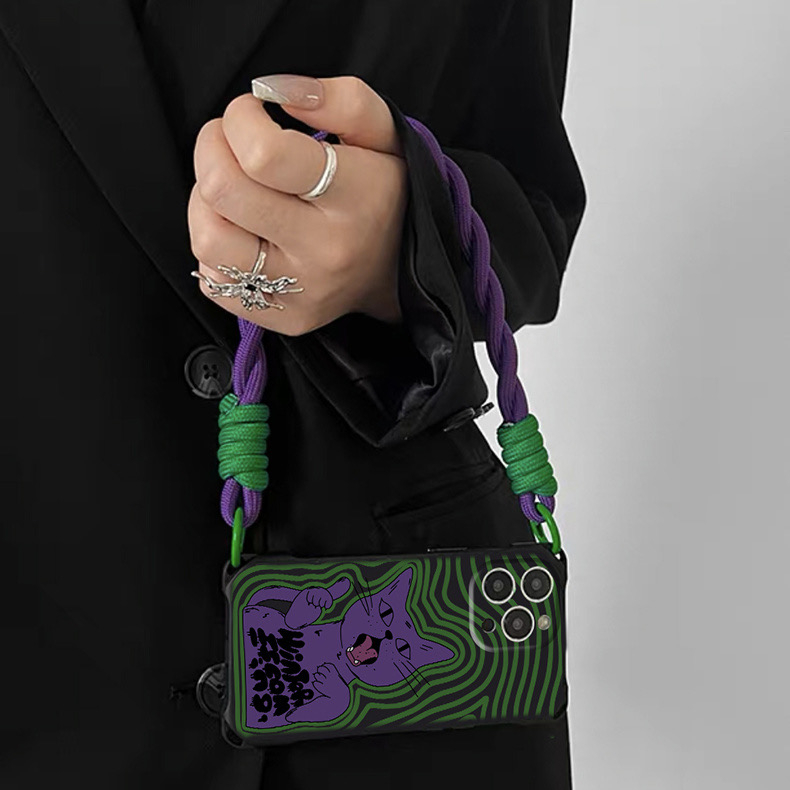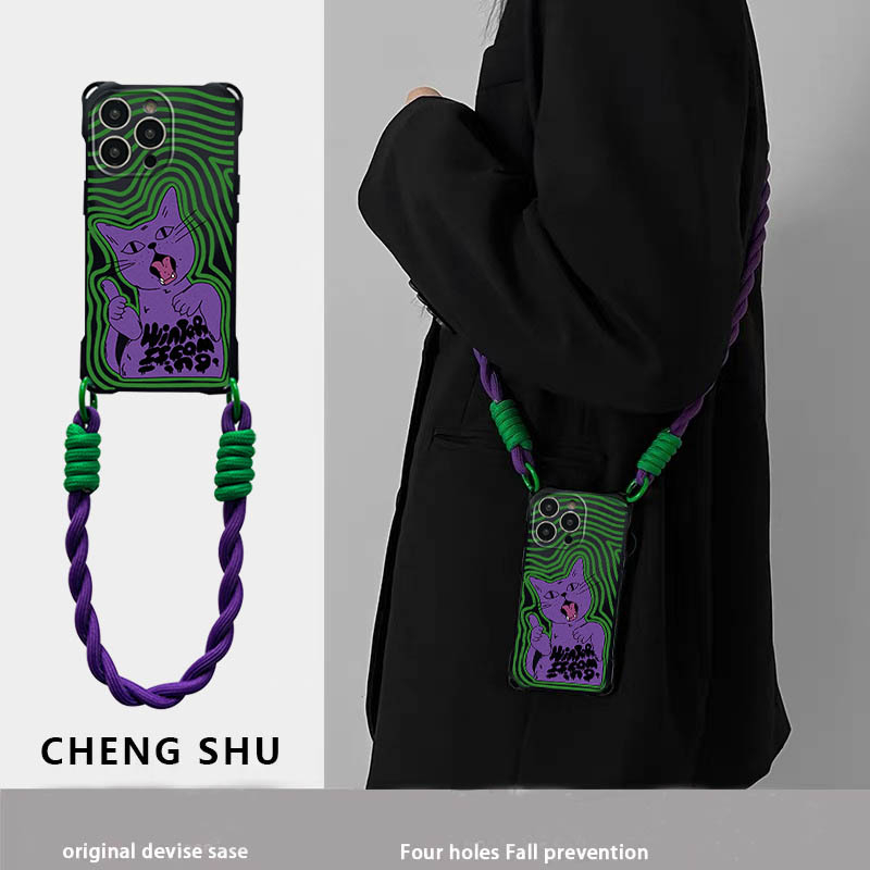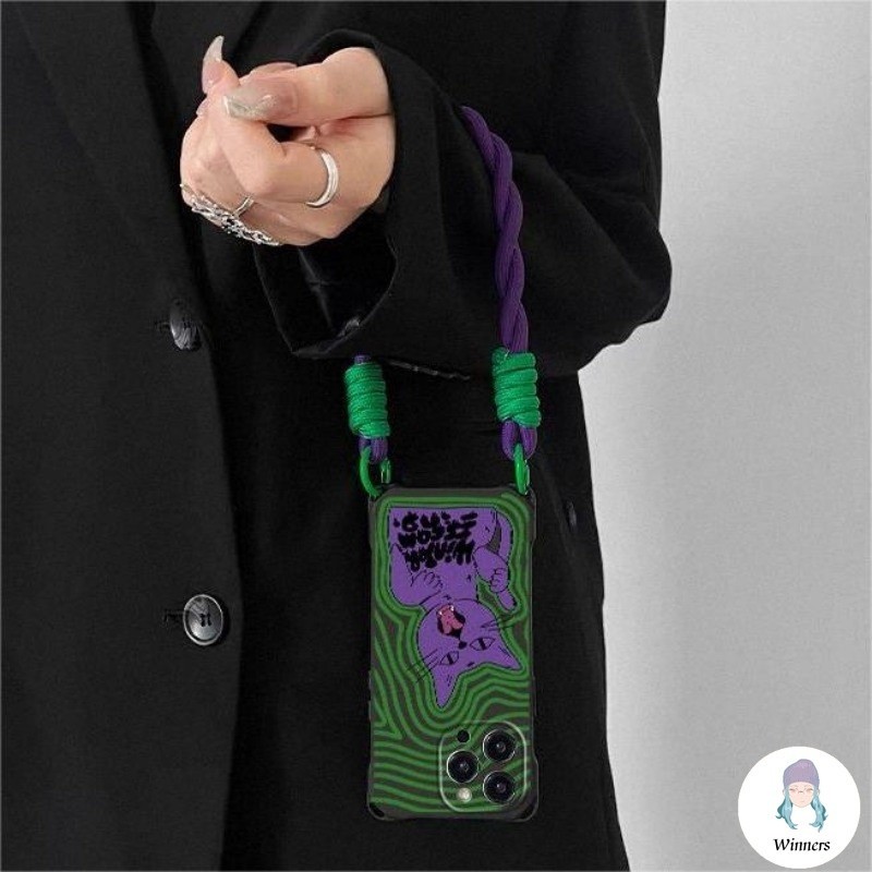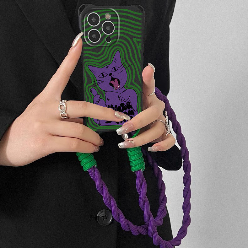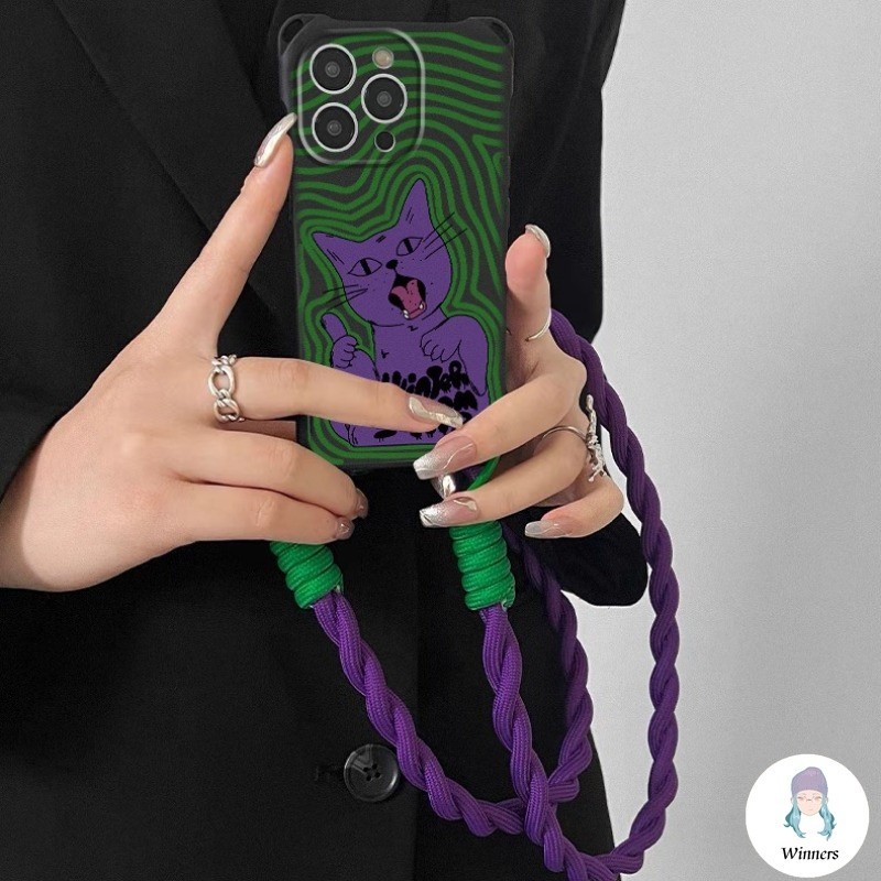 Capa De Telefone Com Pulseira De Corda Trançada De Gato Vintage Compatível IPhone 16 15 11 14 Pro Max 13 12 X XS Quatro
