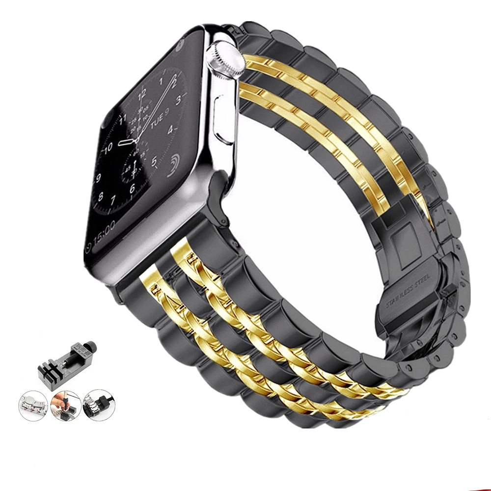 Pulseira De Aço inoxidável Para Apple Watch Ultra 49mm 40mm 44mm 41mm 38mm 42mm 45mm iWatch 10 11 46mm Sete Contas Alça